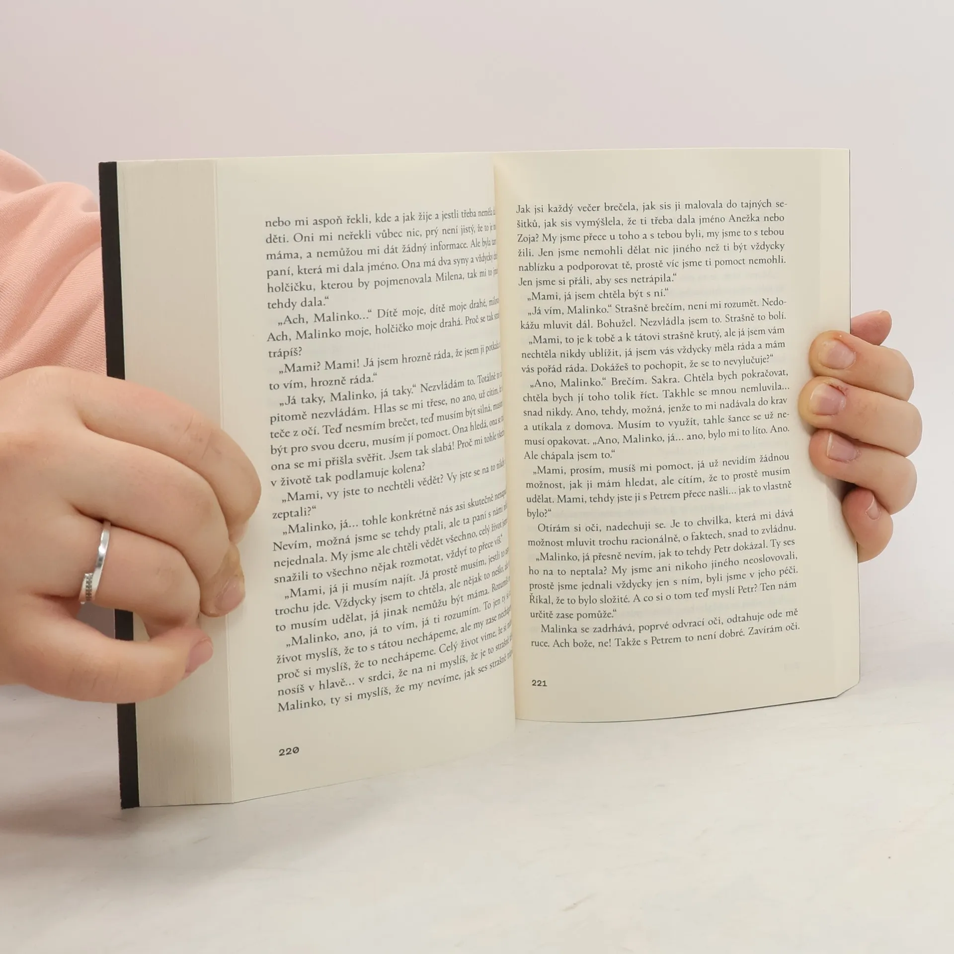 Narodila se v porodnici, přesto je úředně nalezencem. Když ji totiž Ina s Jaromírem ke svým dvěma biologicky vlastním synům adoptovali, měla téměř ve všech kolonkách rodného listu vepsán údaj Nezjištěno. Ina rozuměla trápením, která Malce její složitý příběh přinášel. Toužila stát při ní, ale mnohdy to zkrátka nevyšlo. Dvaadvacetiletá Malka se dostává do nečekané životní situace, která ji nutí zaplnit prázdná místa jejího života a odpovědět si na otázku, co vlastně dělá mámu mámou. Čtyřicetiletá Alice tohle promýšlet nepotřebuje — zřetelně to vnímá svou intuicí, avšak složité konstelace mateřství, do kterých se dostává, jsou i pro ni nečekanou výzvou. Otcem dítěte, které obě ženy spojí, je Alicin manžel Roman, který po dítěti hluboce touží. Román Malinka je především svižně a vtipně vyprávěný příběh, který s nesmlouvavou naléhavostí zobrazuje krizi lidské identity, zamýšlí se nad její podstatou a právem na ni. Rodičovství v mnoha podobách se v něm vymyká definicím. Postavy románu se navzájem potřebují k životu, ale ten je často škodolibě plácá přes prsty.