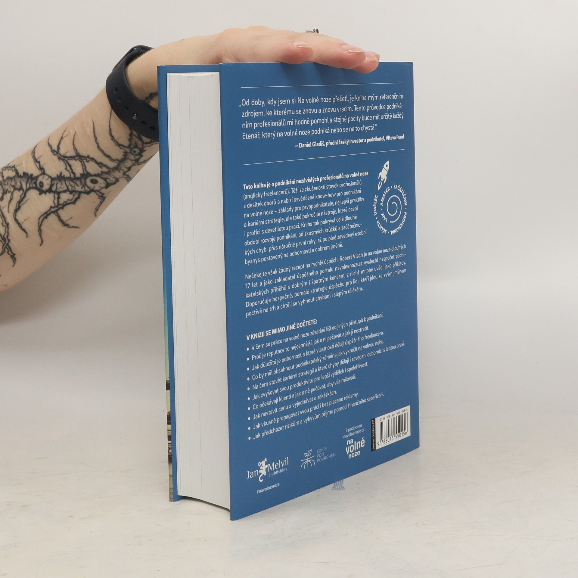 První kniha v češtině o podnikání nezávislých profesionálů těží ze zkušeností mnoha set českých freelancerů z desítek oborů. Nabízí osvědčené postupy a know-how pro podnikání na volné noze: základy pro prvopodnikatele, nejlepší praktiky a kariérní strategie, ale také pokročilé nástroje, které ocení i profíci s více než desetiletou podnikatelskou praxí. Kniha tak pokrývá celé dlouhé období rozvoje podnikání, od zkusmých krůčků a začátečnických chyb, přes náročné první roky, až po plně zavedený osobní byznys postavený na odbornosti a dobrém jméně (s překvapivou pointou na závěr).