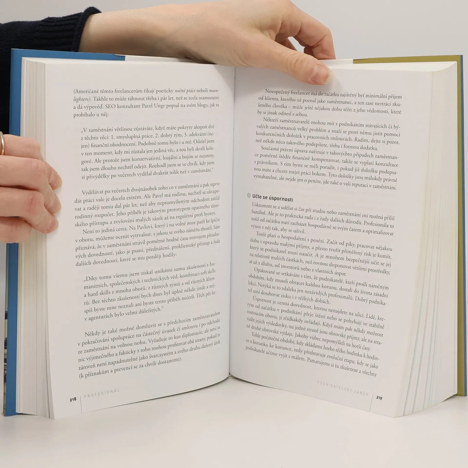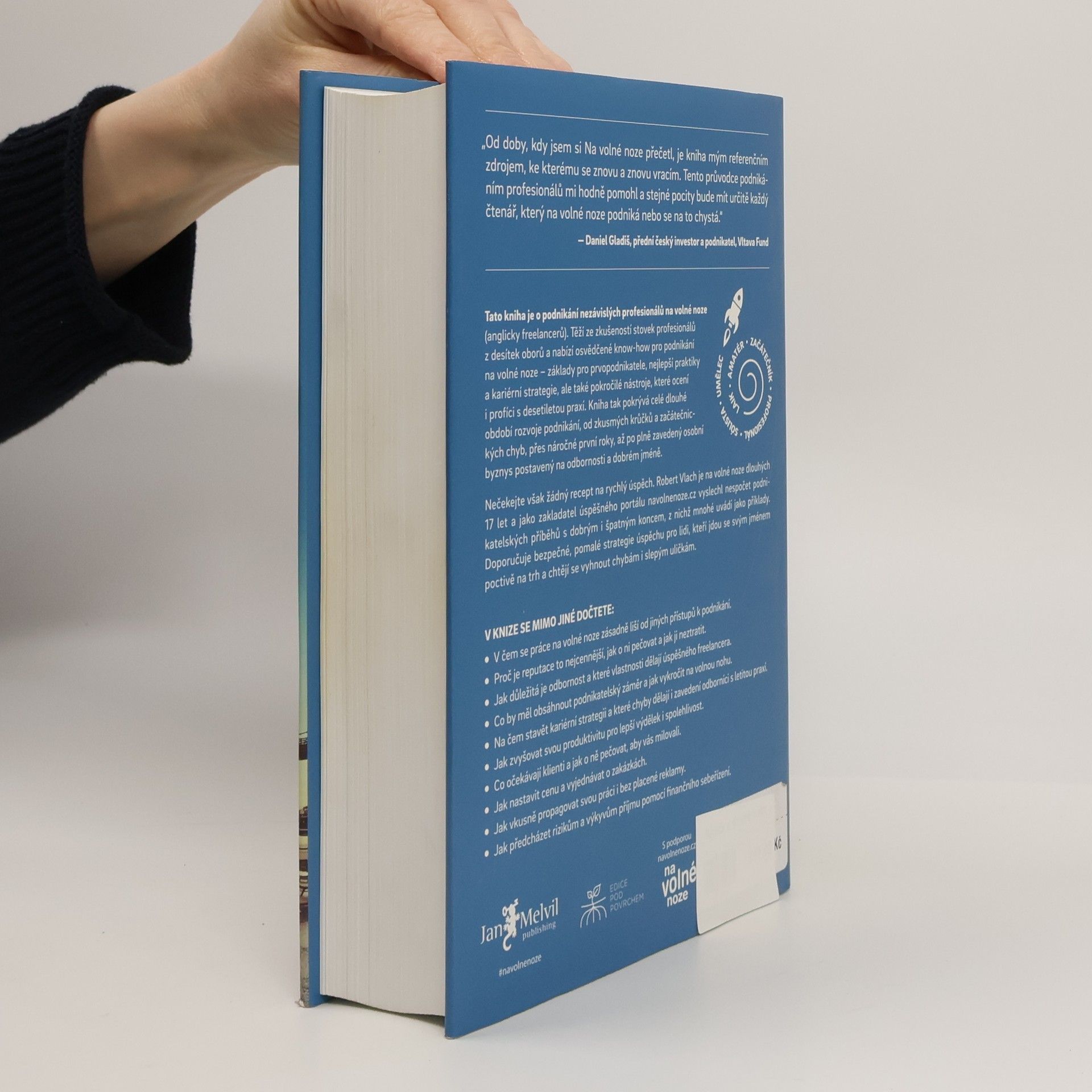 První kniha v češtině o podnikání nezávislých profesionálů těží ze zkušeností mnoha set českých freelancerů z desítek oborů. Nabízí osvědčené postupy a know-how pro podnikání na volné noze: základy pro prvopodnikatele, nejlepší praktiky a kariérní strategie, ale také pokročilé nástroje, které ocení i profíci s více než desetiletou podnikatelskou praxí. Kniha tak pokrývá celé dlouhé období rozvoje podnikání, od zkusmých krůčků a začátečnických chyb, přes náročné první roky, až po plně zavedený osobní byznys postavený na odbornosti a dobrém jméně (s překvapivou pointou na závěr).