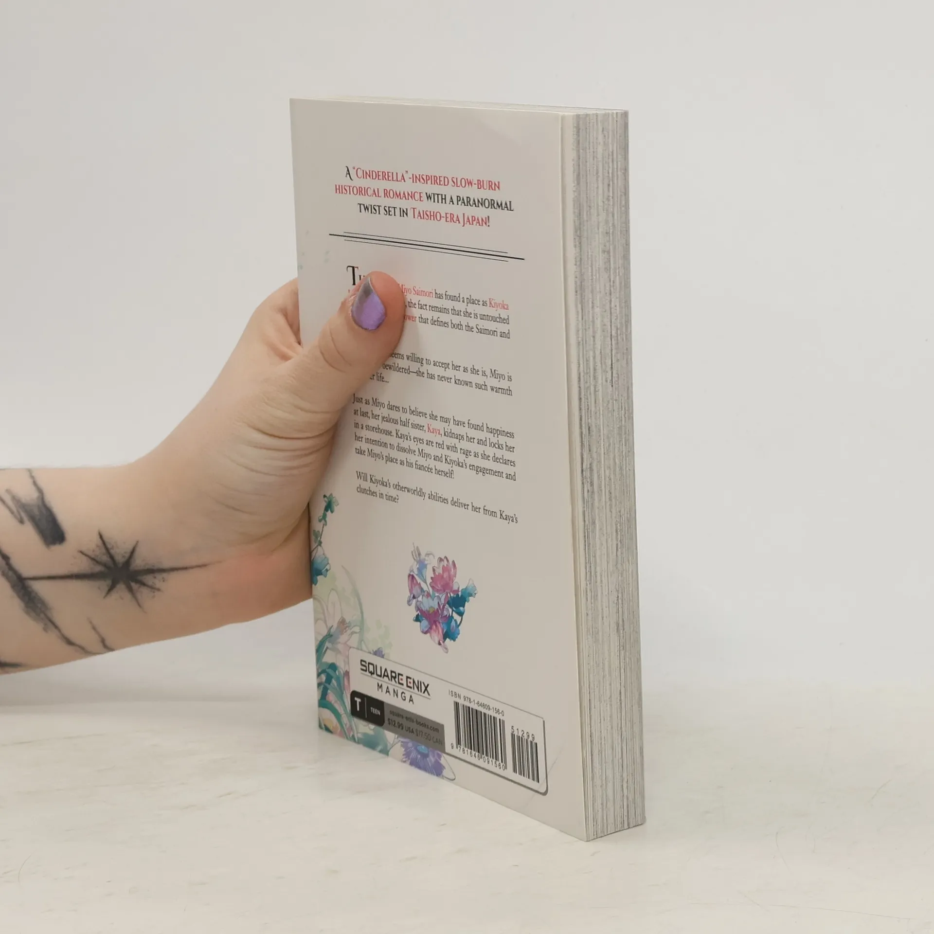 A Cinderella-inspired, slow-burn historical romance with a paranormal twist set in Taisho-era Japan! A browbeaten and mistreated daughter is cast out of her home and sent to audition as a bridal candidate for the heir to one of the most powerful families in the land… For failing to inherit the boon of unusual power that is the Saimori birthright and bringing shame to the family name, mistreated Miyo is cast out to become another's problem. Sent to the Kudo clan—itself preternaturally powerful—as a potential bride for its heir, Kiyoka, Miyo is surprised to experience kindness for the first time in her thus far sad life. Though the rumors make him out to be cold and haughty, Kiyoka Kudo quickly warms up to the Saimori's eldest daughter. Intrigued by the girl who stands worlds apart from the spoiled, social-climbing women who usually vie for his hand, Kiyoka soon comes to regard Miyo with affection. Just as Miyo believes she may have found happiness at last, her jealous half-sister Kaya kidnaps her and locks her in a cellar. Kaya's eyes are red with rage as she declares her intention to dissolve Miyo's engagement to Kiyoka and replace Miyo as his fiancée herself! Will Kiyoka's supernatural abilities deliver her from Kaya's clutches in time?