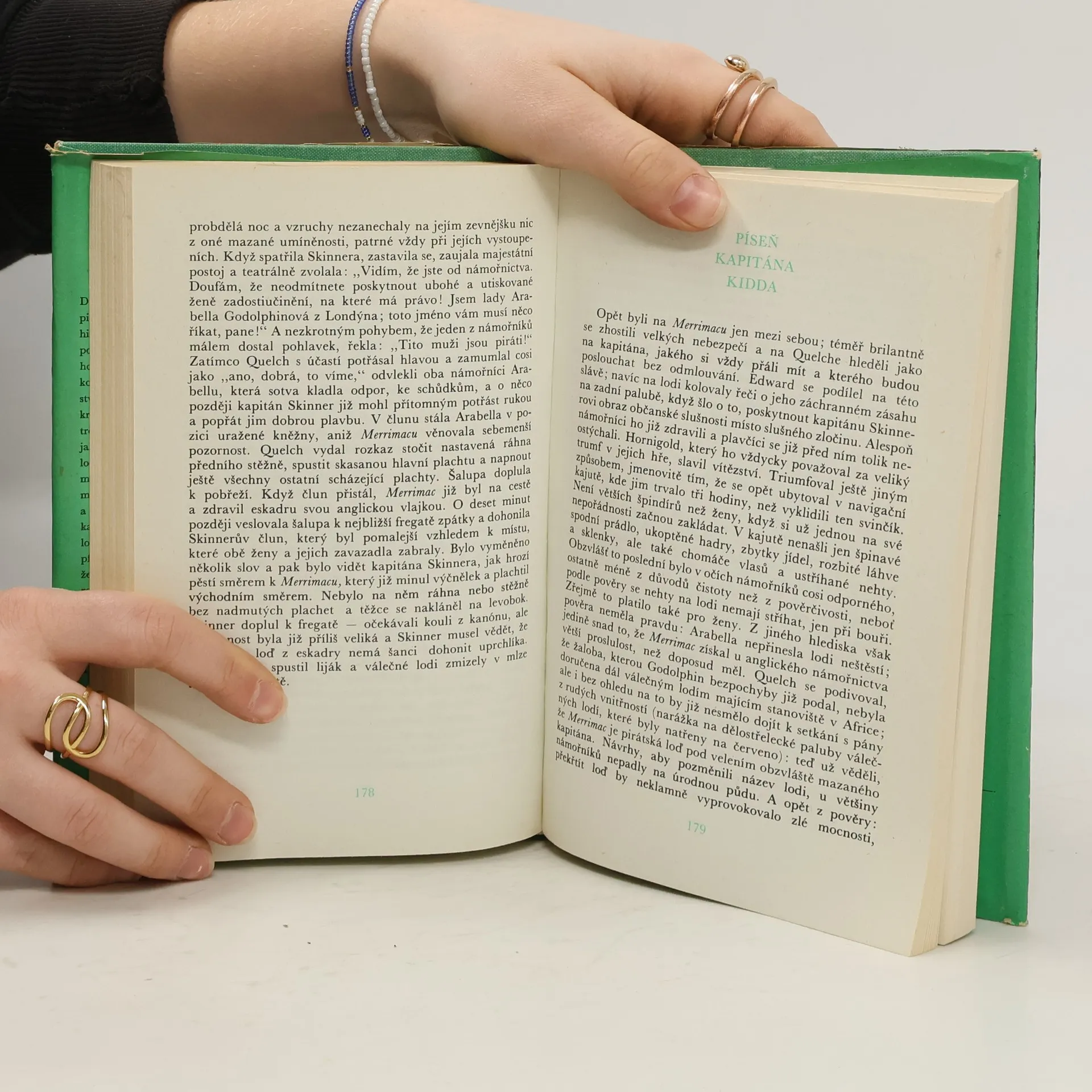 Na historickém pozadí překotného rozvoje anglických kolonií v Novém světě v první polovině 18. století a zejména Bostonu rozvíjí autor příběh plachetnice Merrimac postavené jako dopravní loď trojicí puritánských obchodníků, určené ale od prvopočátku k poněkud méně bohulibým účelům, jako je přeprava zboží, nýbrž k provozování pirátské profese. Takže se nám začíná děj měnit na čistokrevnou pirátskou knihu se všemi atributy dobrodružného románu, sdílíme s posádkou strasti drsného života na moři, zmítáme se s Merrimac v bouřlivých vlnách, nechybí ani krásná intrikánka – herečka Arabella – v roli nečekaného pasažéra. Najednou si ale uvědomíme, že si z nás autor trochu střílí, že svého vynikajícího vypravěčského talentu užil nejen k tomu, aby nás seznámil s životem lidí na moři, ale aby vytvořil dokonalou satiru, ne-li přímo parodii na romány s pirátskou tématikou. Tou dobou vás už ale charakteristiky postav a děj knihy natolik zaujmou, že ji dočtete, aby jste věděli, jak to všechno vlastně dopadlo.