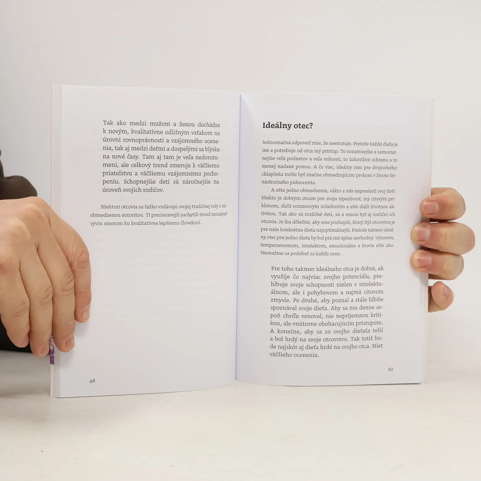 Kto by nechcel mať dobre vychované deti? Často sa vyhovárame na vonkajšie vplyvy, no sťažnosti na deti sú často maskovanou sebakritikou. Výchova môže byť definovaná ako spoločné objavovanie krásy života s dieťaťom, čo naznačuje, že výchova je zmyslom života. Autor sa zamýšľa nad úlohou otca v modernej rodine a rôznymi štýlmi otcovstva. Každé dieťa si vyžaduje iný prístup, preto je dôležité pochopiť, ktorý štýl je pre konkrétne dieťa najvhodnejší. Takmer ideálny otec pre jedno dieťa môže byť nevhodný pre iné. Otec by mal rozvíjať svoj potenciál a spoznávať svoje dieťa, pričom by sa mu mal venovať pozitívne, nie kritikou. Otec, ktorý sa teší zo svojho dieťaťa, vytvára priestor pre hrdosť na otca aj dieťa. Profesor Ivan Štúr, významný slovenský detský psychológ, sa počas svojho života venoval individuálnemu prístupu k deťom. Jeho dielo a prednášky na univerzitách sú známe ako kľúčové pre porozumenie detskej psychológii. Sám zdôrazňoval, že netreba vychovávať, ale žiť dobrým príkladom, aby sa dieťa prirodzene pridalo.