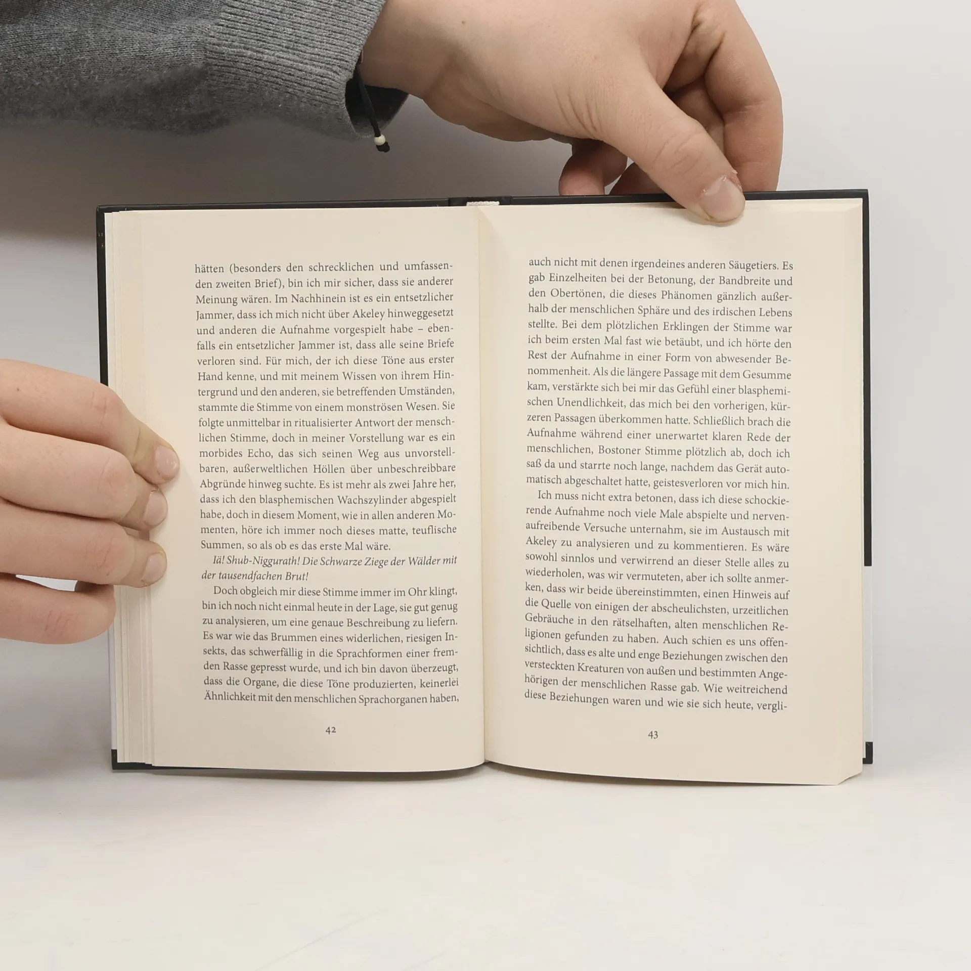 »Der größte Horrorautor des 20. Jahrhunderts ist H. P. Lovecraft, daran gibt es keinen Zweifel.« Stephen King Das ist schon unheimlich, was dieser Typ namens Akeley da berichtet: Lebendige Pilze vom Yuggoth, seltsame Wesen aus dem All, treiben sich in den Bergen von Vermont herum und bauen dort Mineralien ab. Professor Wilmarth ist rasch angefixt von den fantastischen Behauptungen. Die Außerirdischen sollen menschliche Gehirne ausbauen und voll funktionstüchtig auf ihren Heimatplaneten mitnehmen können. Verrückt ist das, aber keine zu verrückte Idee für H. P. Lovecraft, den Meister des exquisiten Science-Fiction-Horrors. »Der größte Horror-Autor des 20. Jahrhunderts ist H. P. Lovecraft, daran gibt es keinen Zweifel.« Stephen King Die Keimzelle des Horrors: Lovecrafts wichtigstes Werk Prägend für den Horrorfilm und die Literatur: Von John Carpenters »Das Ding aus einer anderen Welt« zu den Autor*innen des New Weird (China Mieville, Jeff VanderMeer uvm.) bis zu etwa dem enfant terrible Michel Houellebecq Neben dem Ctlhuhu-Mythos das wichtigste Werk Lovecrafts Eine Mischung aus Fantasy, Science Fiction und Horror. Inspiration für Filme wie »Das Ding aus einer anderen Welt« oder »Auslöschung«