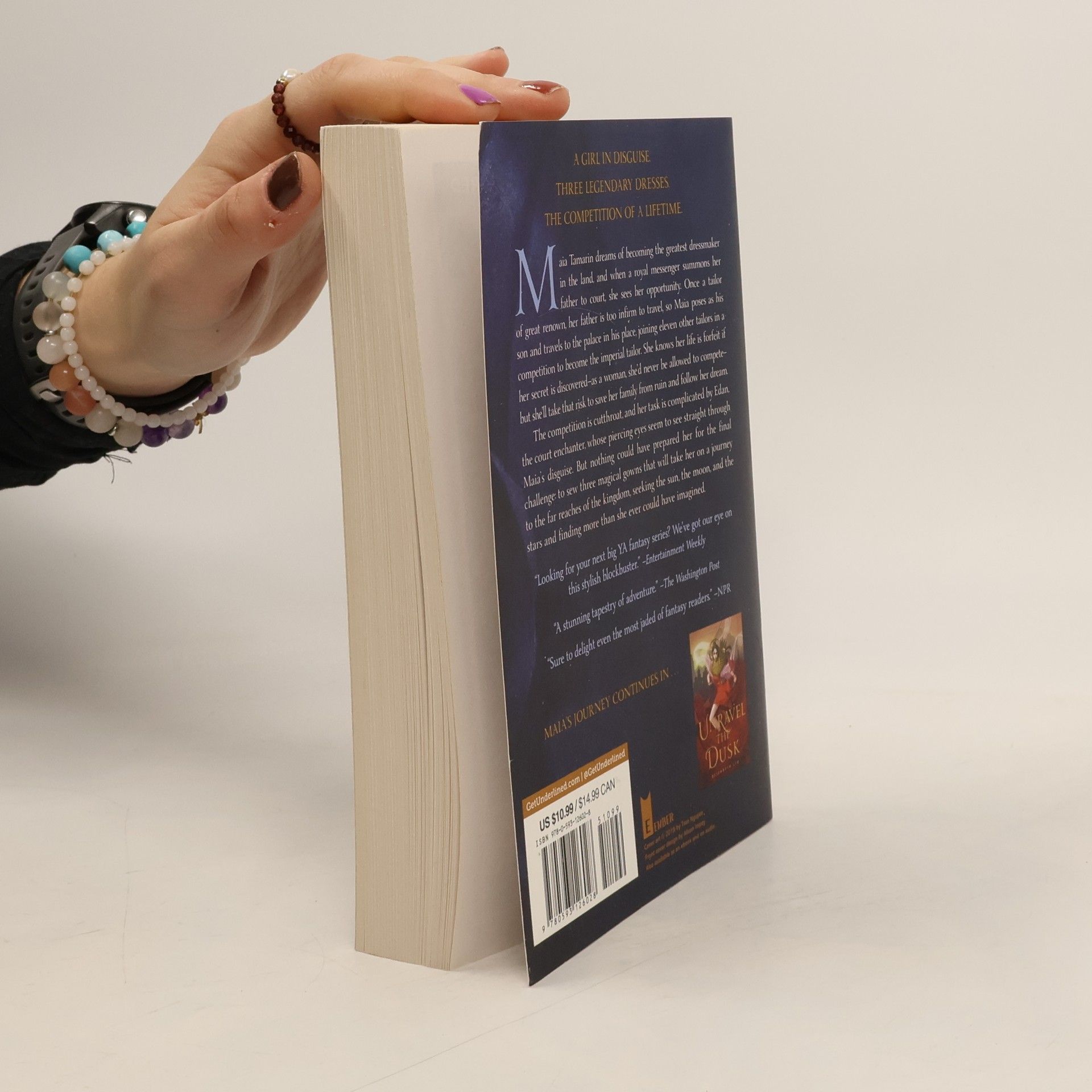 Disguising herself as a boy to compete for the position of imperial tailor, Maia must somehow complete the impossible task of sewing three magic gowns for the emperor's bride-to-be from the sun's laughter, the moon's tears, and the blood of stars