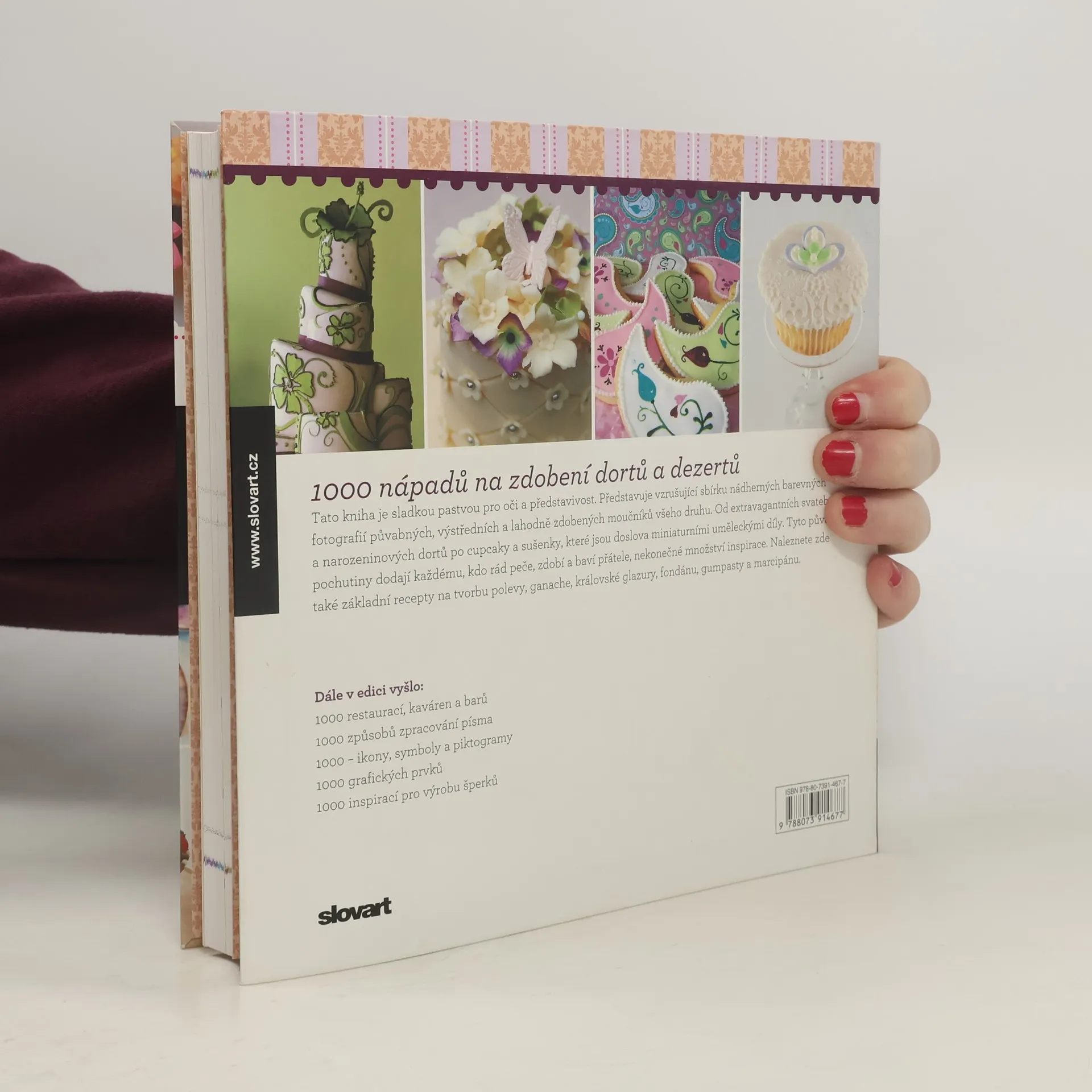 V knize 1000 ozdob na dorty a dezerty naleznete základní recepty na tvorbu polevy, ganache, královské glazury, fondánu, gumpasty a marcipánu. Sladká pastva pro oči a představivost amatérských cukrářů i milovníků sladkého pokušení. Vzrušující sbírka představuje nádherné barevné fotografie půvabných, výstředních a lahodně zdobených moučníků všeho druhu. Od extravagantních svatebních a narozeninových dortů po cupcaky a sušenky, které jsou doslova miniaturními uměleckými díly. Půvabné pochutiny dodají nekonečné množství inspirace každému, kdo rád peče, zdobí a baví přátele.