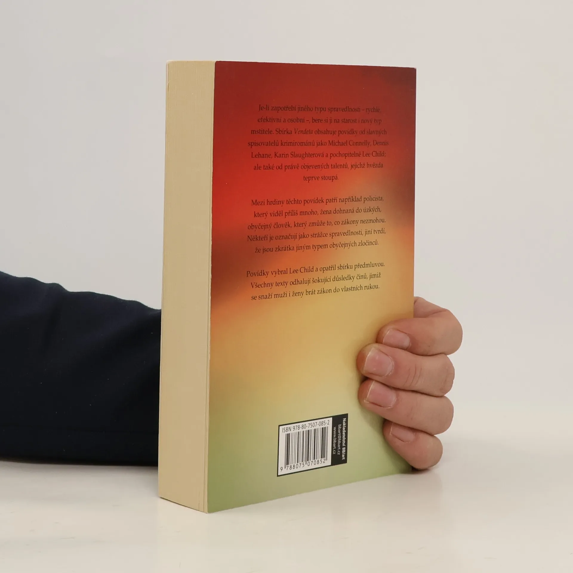 Je-li zapotřebí jiného typu spravedlnosti – rychlé, efektivní a osobní –, bere si ji na starost i nový typ mstitele. Sbírka Vendeta obsahuje nové povídky od slavných spisovatelů krimirománů jako Michael Connelly, Dennis Lehane, Karin Slaughterová a pochopitelně Lee Child; ale také od právě objevených talentů, jejichž hvězda teprve stoupá. Mezi hrdiny těchto povídek patří například policista, který viděl příliš mnoho, žena dohnaná do úzkých, obyčejný člověk, který zmůže to, co zákony nezmohou. Někteří je označují jako strážce spravedlnosti, jiní tvrdí, že jsou zkrátka jiným typem obyčejných zločinců. Povídky vybral Lee Child a opatřil sbírku předmluvou. Všechny texty odhalují šokující důsledky činů, jimiž se snaží muži i ženy brát zákon do vlastních rukou. 2. vydání.