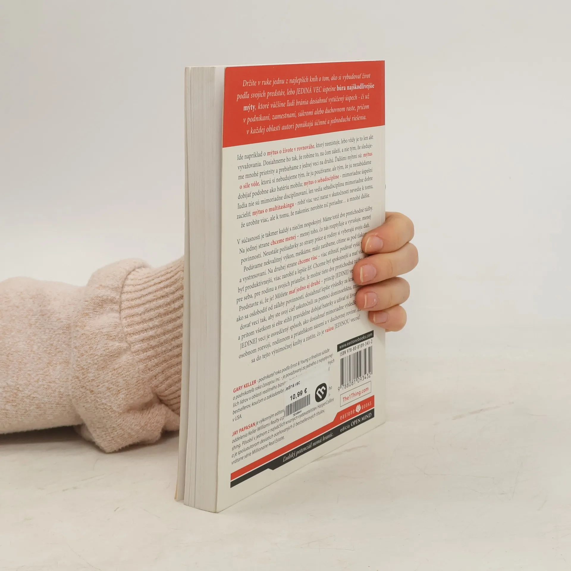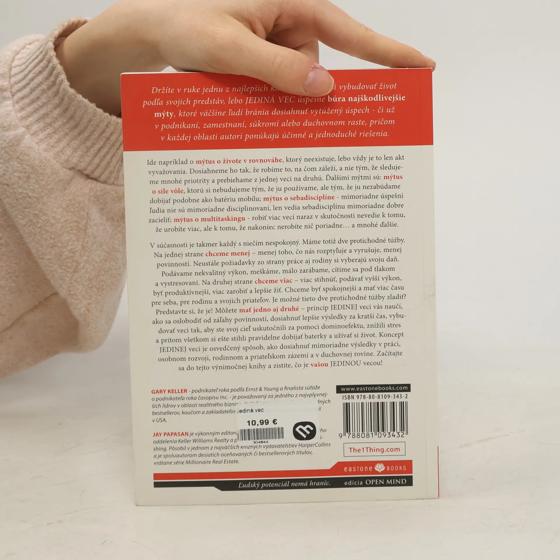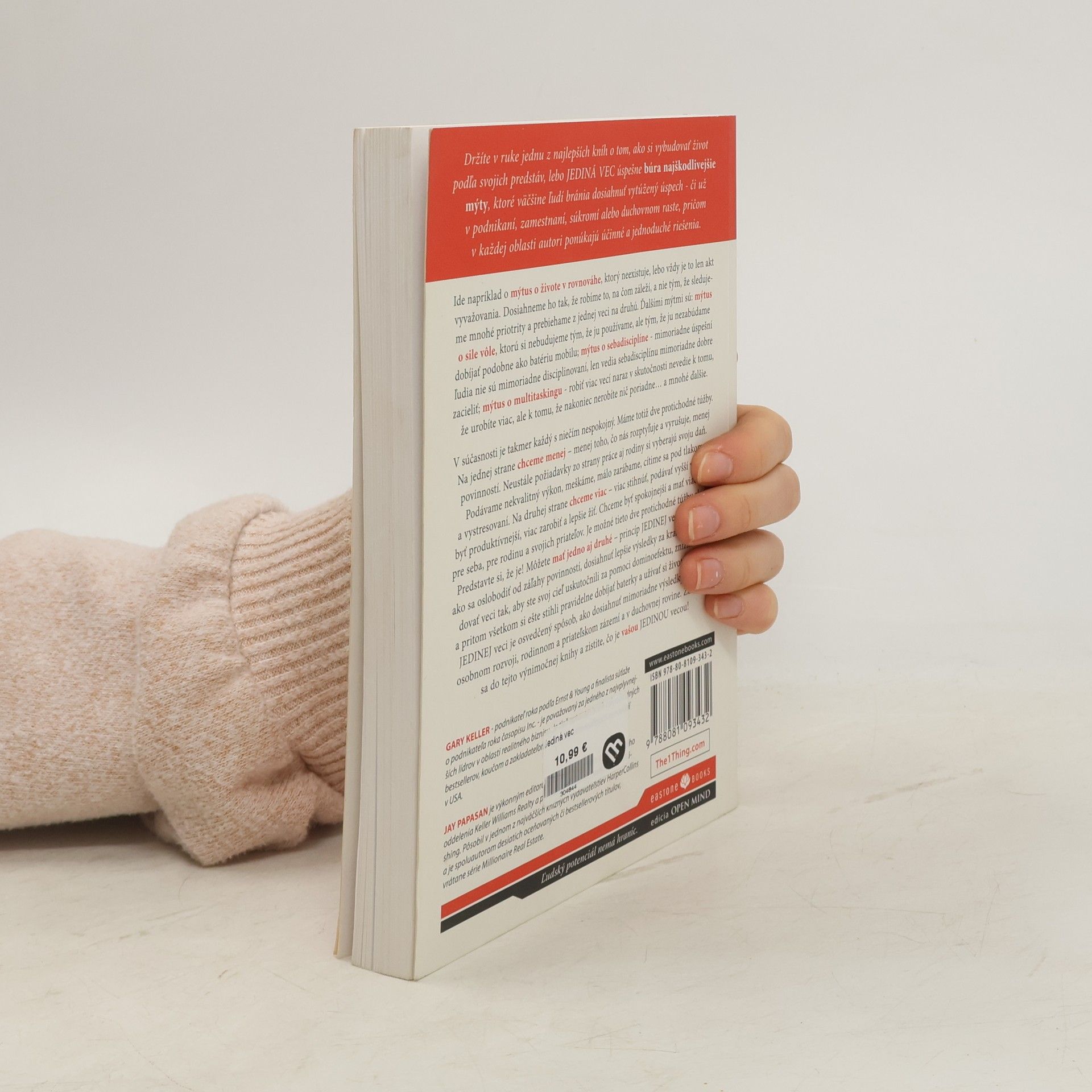 12 knižných ocenení; 350 umiestnení v rôznych rebríčkoch bestsellerov, vrátane tých najrešpektovanejších vo Wall Street Journal, NewYork Times a USA Today; 27 jazykových mutácií a publikovanie vo vyše 30 krajinách sveta; 1 z piatich najlepších biznisových kníh roka; 1 zo sto najlepších biznisových kníh všetkých čias.Držíte v ruke jednu z najlepších kníh o tom, ako si vybudovať život podľa vašich predstáv, lebo JEDINÁ VEC úspešne búra najškodlivejšie mýty, ktoré väčšine ľudí bránia dosiahnuť vytúžený úspech - či už v podnikaní, zamestnaní, súkromí alebo duchovnom raste, pričom v každej oblasti autori ponúkajú účinné a jednoduché riešenia. Koncept JEDINEJ veci je osvedčený spôsob, ako dosiahnuť mimoriadne výsledky v práci, osobnom rozvoji, rodinnom a priateľskom zázemí a v duchovnej rovine. Začítajte sa do tejto výnimočnej knihy a zistite, čo je vašou JEDINOU vecou!