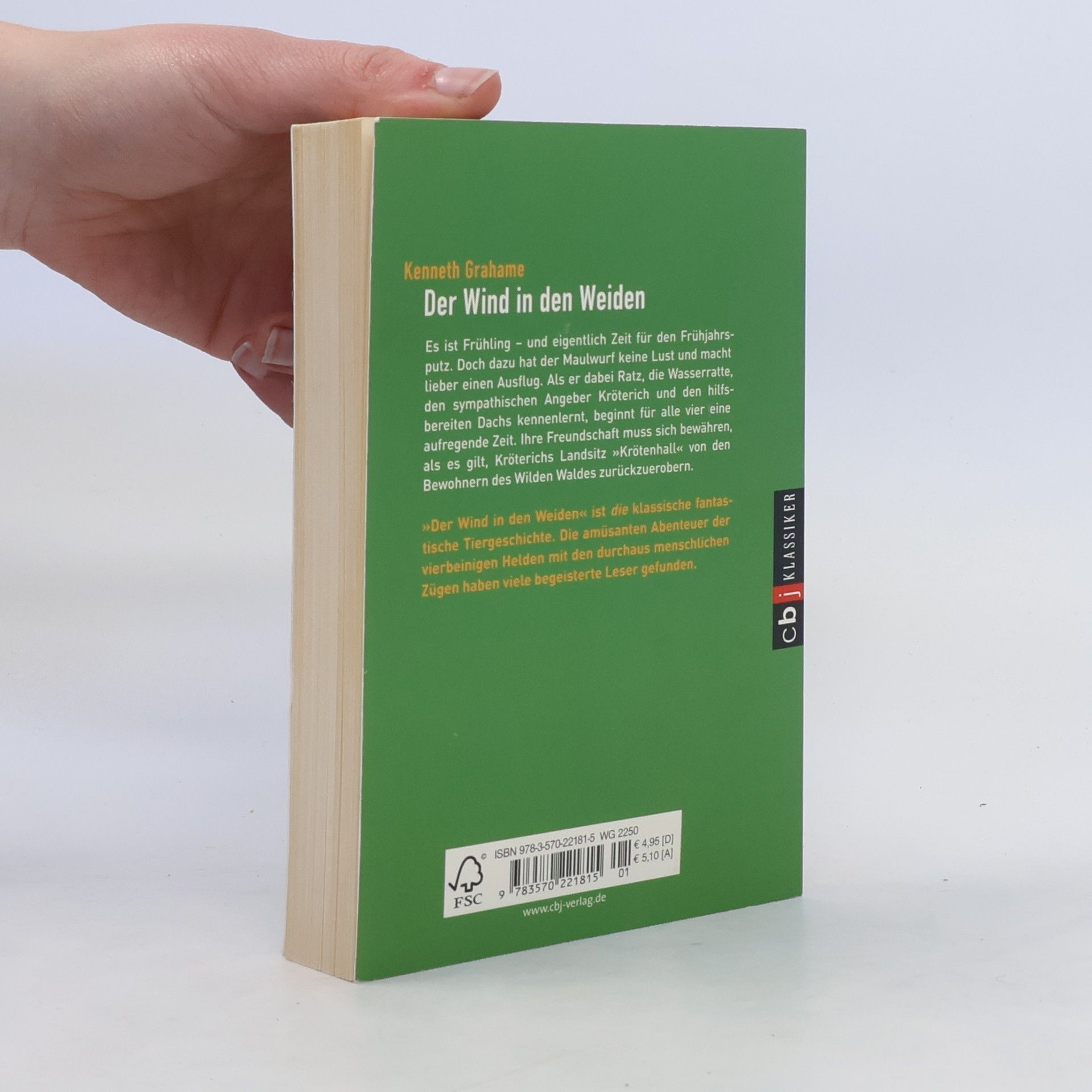 Auf der Flucht vor dem Frühjahrsputz lernt der Maulwurf den Frühling, die Welt und die Freundschaft kennen. Die Geschichten von Dachs, Maulwurf, Kröterich und der Ratte machten Kenneth Grahame weltberühmt. Der Wind in den Weiden ist ein Klassiker der angelsächsischen Kinderliteratur. Seine Hauptpersonen, vier liebenswerte vierfüßige Gentlemen haben schon Generationen Kindern und Erwachsenen zum Schmunzeln gebracht - denn das, was Ratte, Maulwurf, Kröterich und Dachs so alles widerfährt, trägt oft genug menschliche Züge.