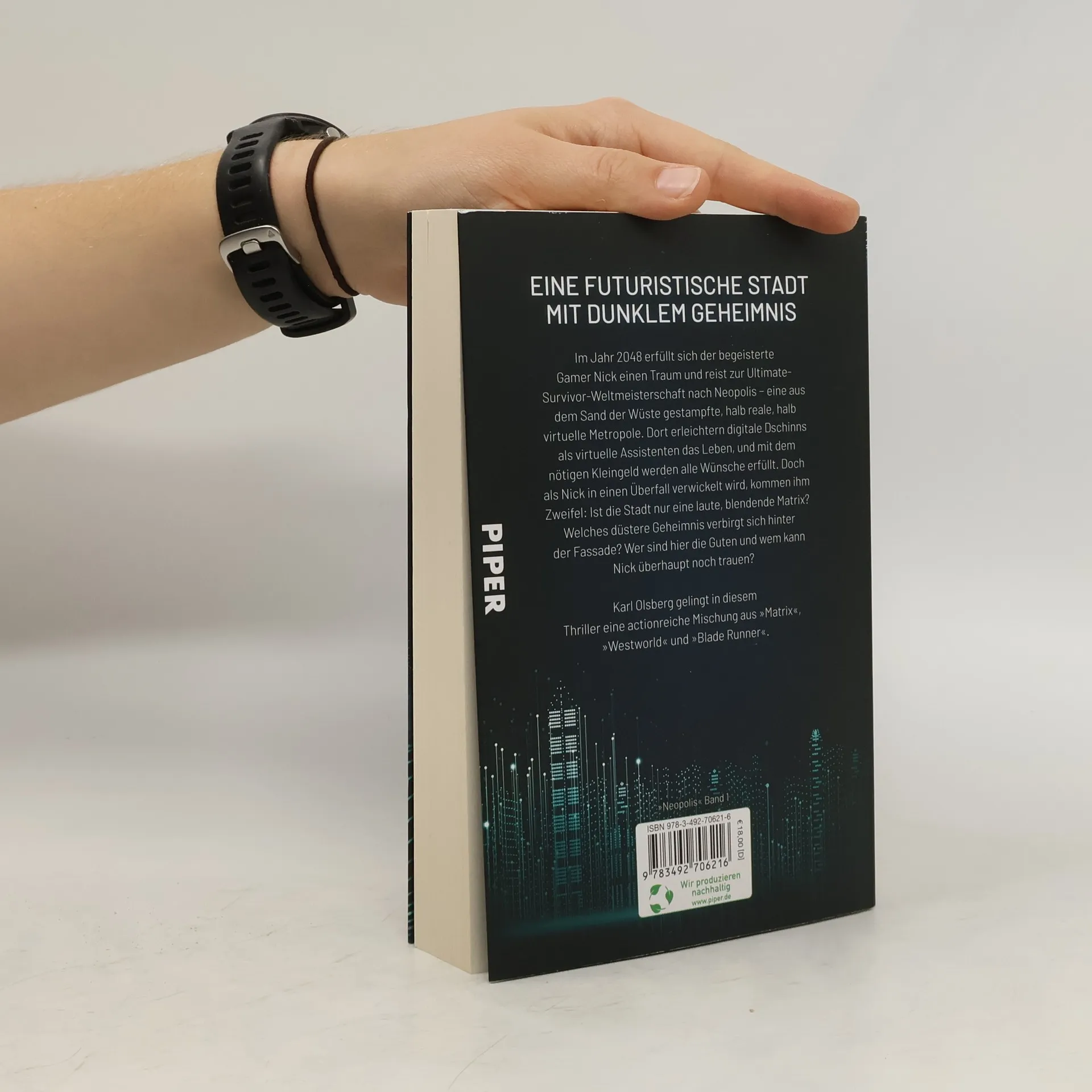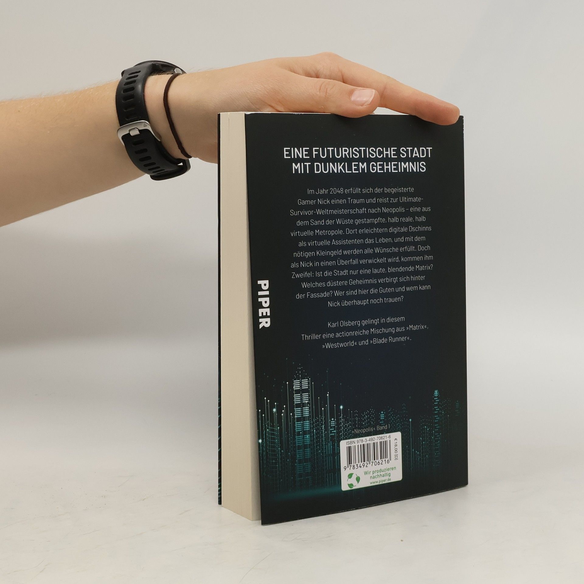Eine futuristische Stadt mit finsterem Geheimnis – gefährlich und unberechenbar KI-Experte Karl Olsberg spinnt eine erschreckend aktuelle Zukunftsversion in seiner actionreichen »Neopolis«-Reihe. Künstliche Intelligenz ist im 21. Jahrhundert genauso real wie Augmented Reality und das macht sich der Autor bei seinem Gedankenexperiment zu nutzen: Er kreiert eine Welt, die einen sofort in den Bann zieht und zukunftsrelevante Fragen aufwirft. Im Jahr 2048 erfüllt sich der begeisterte Gamer Nick einen Traum und reist zur Ultimate Survivor-Weltmeisterschaft nach Neopolis − eine in der Wüste aus dem Boden gestampfte, halb reale, halb virtuelle Metropole, in der digitale Dschinns als virtuelle Assistenten das Leben erleichtern und mit dem nötigen Kleingeld alle Wünsche erfüllt werden. Doch Nick kommen schnell Zweifel: Ist die Stadt nur eine blendend-laute Matrix mit einem düsteren Geheimnis? Wer sind hier die Guten und wem kann Nick überhaupt noch trauen? Unmöglich, aus der Hand zu legen.