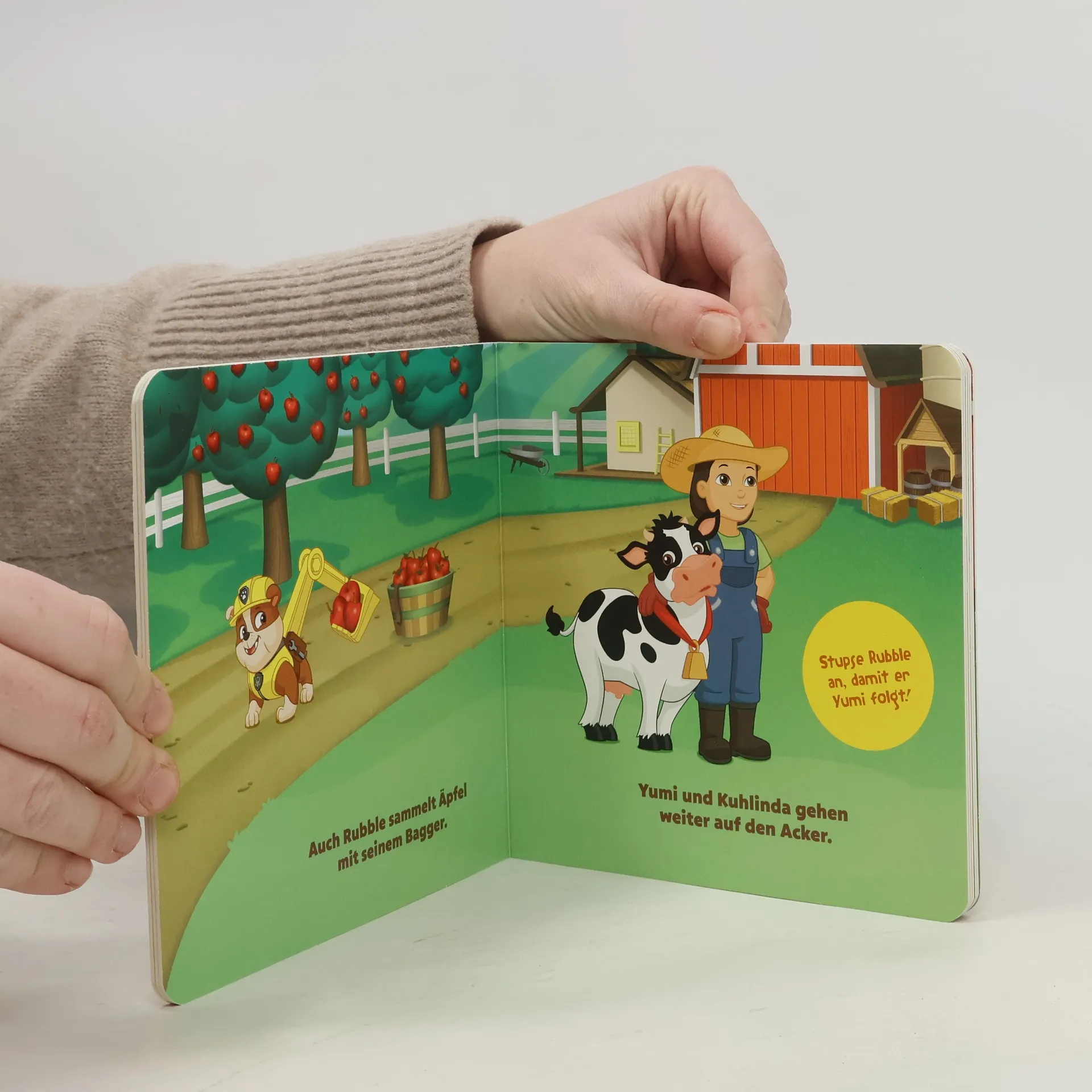 Was hat Bäuerin Yumi auf ihrem Bauernhof alles zu tun? In diesem stabilen Pappenbuch für kleine Hände können Fans der PAW Patrol mit den heldenhaften Welpen einen Tag auf dem Bauernhof verbringen. Sie sammeln Äpfel, helfen im Stall und gießen den Acker. Liebevolle Reime führen durch die Geschichte und lustige Mitmach-Ideen binden Kinder ab 3 Jahren interaktiv in die Welt der Helfer auf vier Pfoten ein. Kein Einsatz zu groß, keine Pfote zu klein!