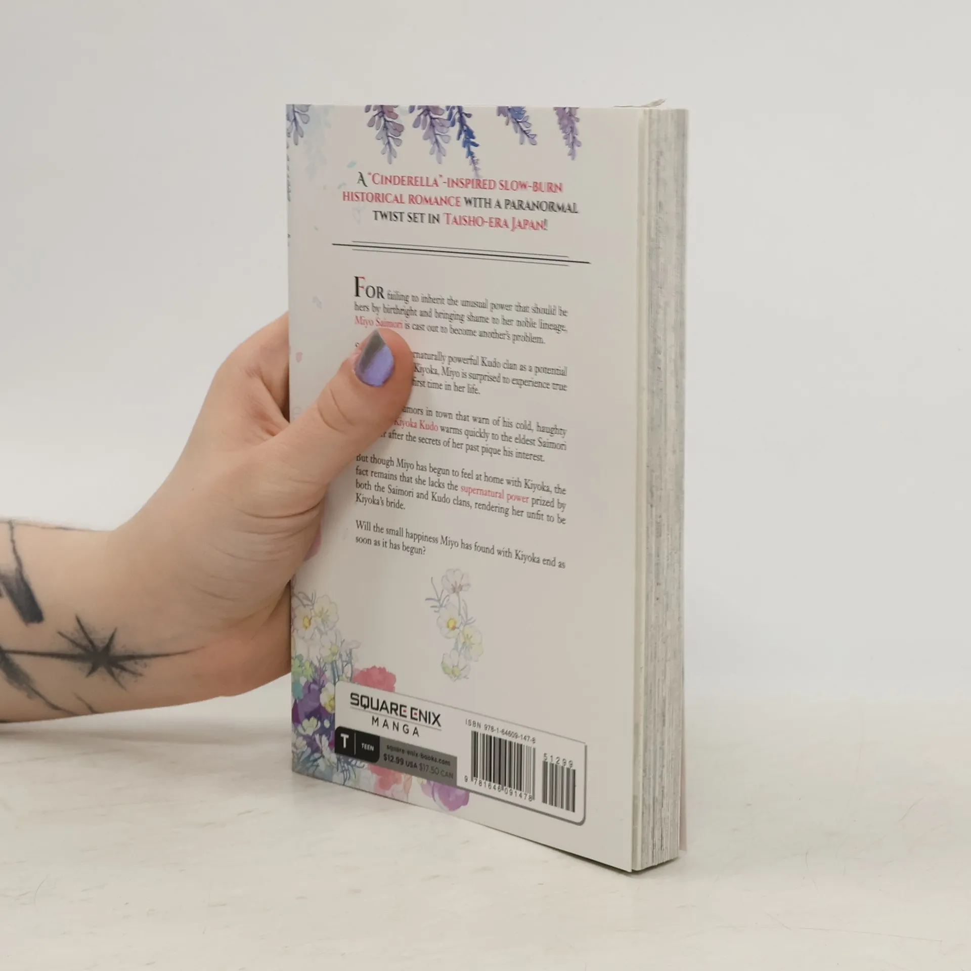 A "Cinderella"-inspired slow-burn historical romance with a paranormal twist set in Taisho-era Japan! A browbeaten and mistreated daughter is cast out of her home and sent to audition as a bridal candidate for the heir to one of the most powerful families in the land… For failing to inherit the boon of unusual power that is the Saimori birthright and bringing shame to the family name, mistreated Miyo is cast out to become another's problem. Sent to the Kudo clan—itself preternaturally powerful—as a potential bride for its heir, Kiyoka, Miyo is surprised to experience kindness for the first time in her thus far sad life. Though the rumors make him out to be cold and haughty, Kiyoka Kudo quickly warms up to the Saimori's eldest daughter. Intrigued by the girl who stands worlds apart from the spoiled, social-climbing women who usually vie for his hand, Kiyoka soon comes to regard Miyo with affection. But though Miyo has found a place—and warmth—in the Kudo household, the fact remains that she is untouched by the power that defines both the Saimori and Kudo clans, making her a failure as a bridal candidate. Will the small happiness Miyo has found with Kiyoka end as soon as it has begun?