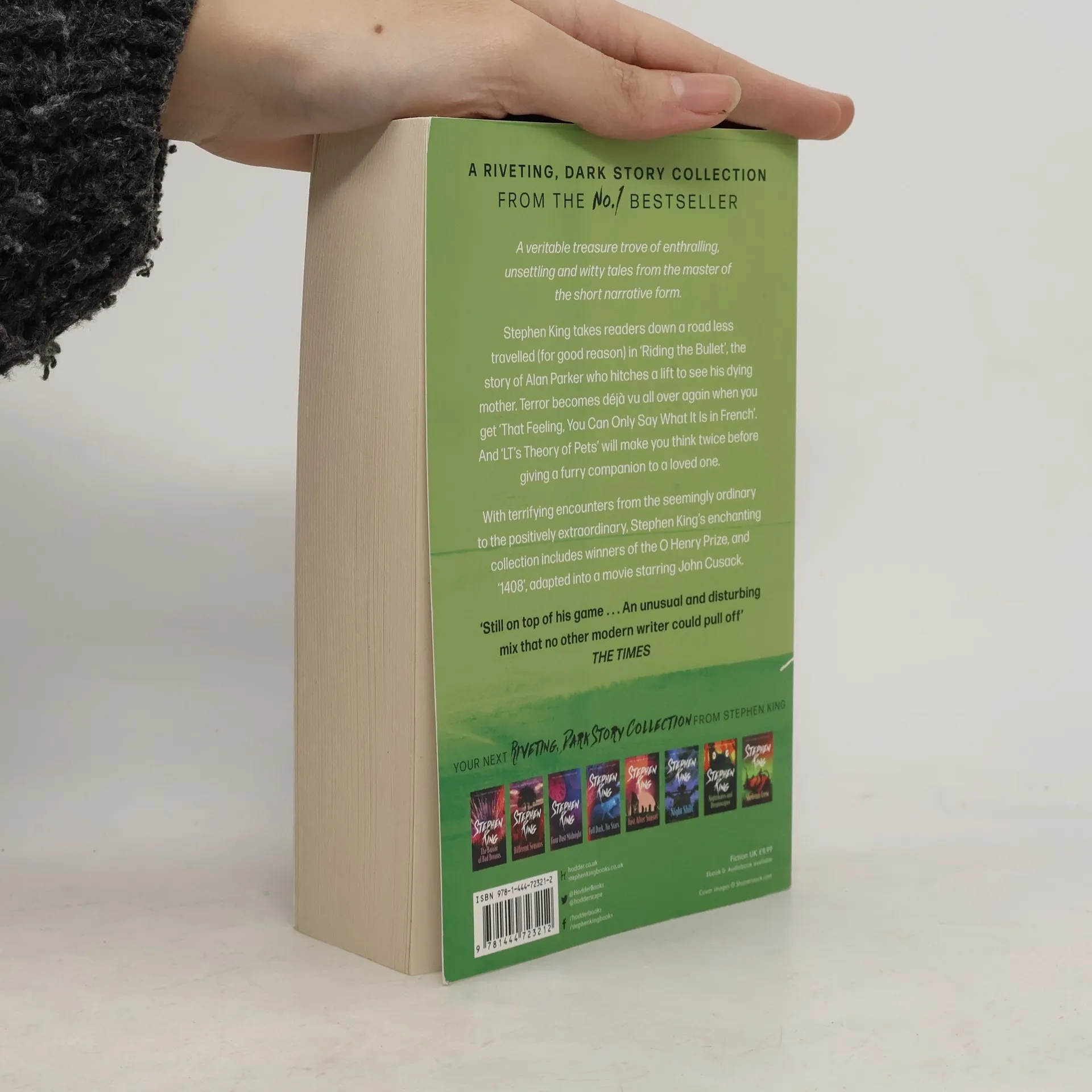 Nothing is quite as it seems.Expect the unexpected in this veritable treasure trove of enthralling, witty, dark tales that could only come from the imagination of the greatest storyteller of our time.In this eerie, enchanting compilation, Stephen King takes readers down a road less travelled (for good reason) in the blockbuster e-book 'Riding the Bullet'. Terror becomes deja vu all over again when you get 'That Feeling, You Can Only Say What It Is in French'. 'LT's Theory of Pets' will make you stop and think before giving a dog to a loved one.§And there are eleven more stories that will keep you awake until dawn.