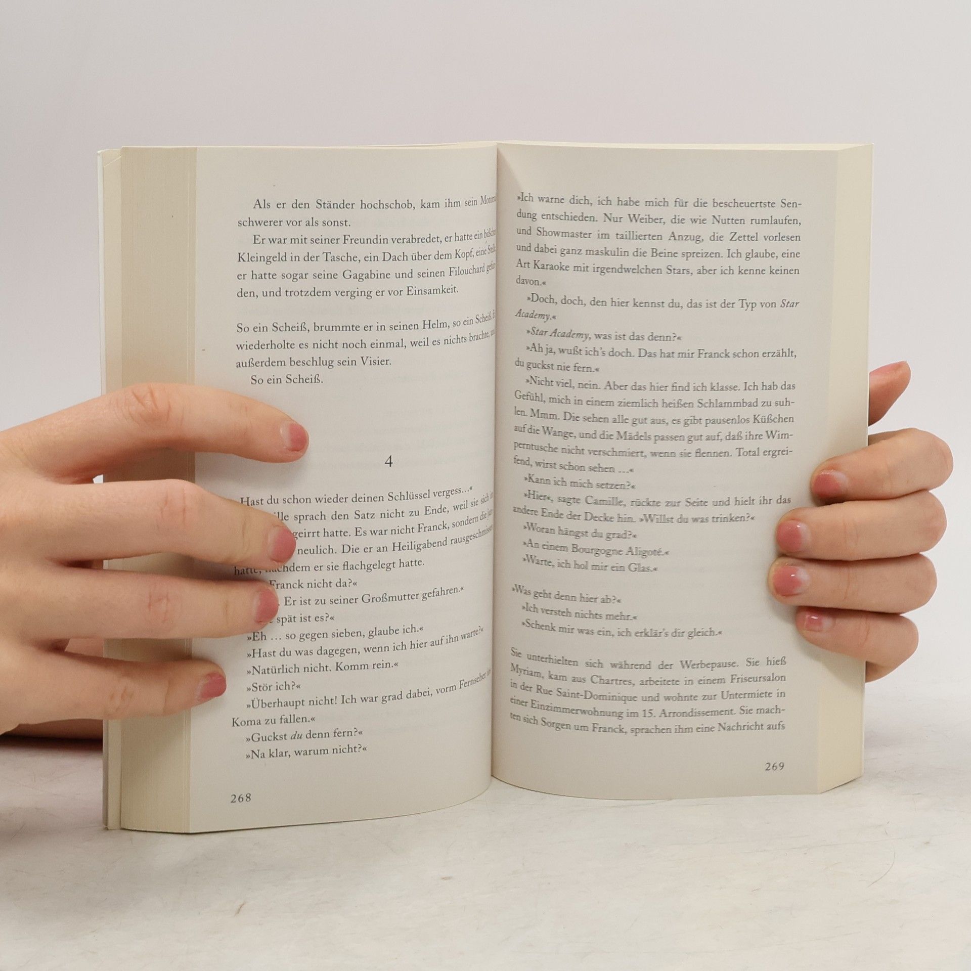 Philibert, von verarmten Adel, ist zwar ein historisches Genie, doch wenn er mit Menschen spricht, gerät er ins Stottern. Camille, magersüchtig und künstlerisch begabt, verdient sich ihren Lebensunterhalt in einer Putzkolonne, und Franck schuftet als Koch in einem Feinschmeckerlokal. Er liebt Frauen, Mototrräder und seine Großmutter Paulette, die keine Lust aufs Altersheim hat. Vier grundverschiedene Menschen in einer verrückten Pariser Wohngemeinschaft, die sich lieben, streiten, bis die Fetzen fliegen, und versuchen, irgendwie zurecht zu kommen. »Ein herzergreifender, zarter und anrührender Roman, in dem das Lachen und die Not verschwistert sind.«Le soir