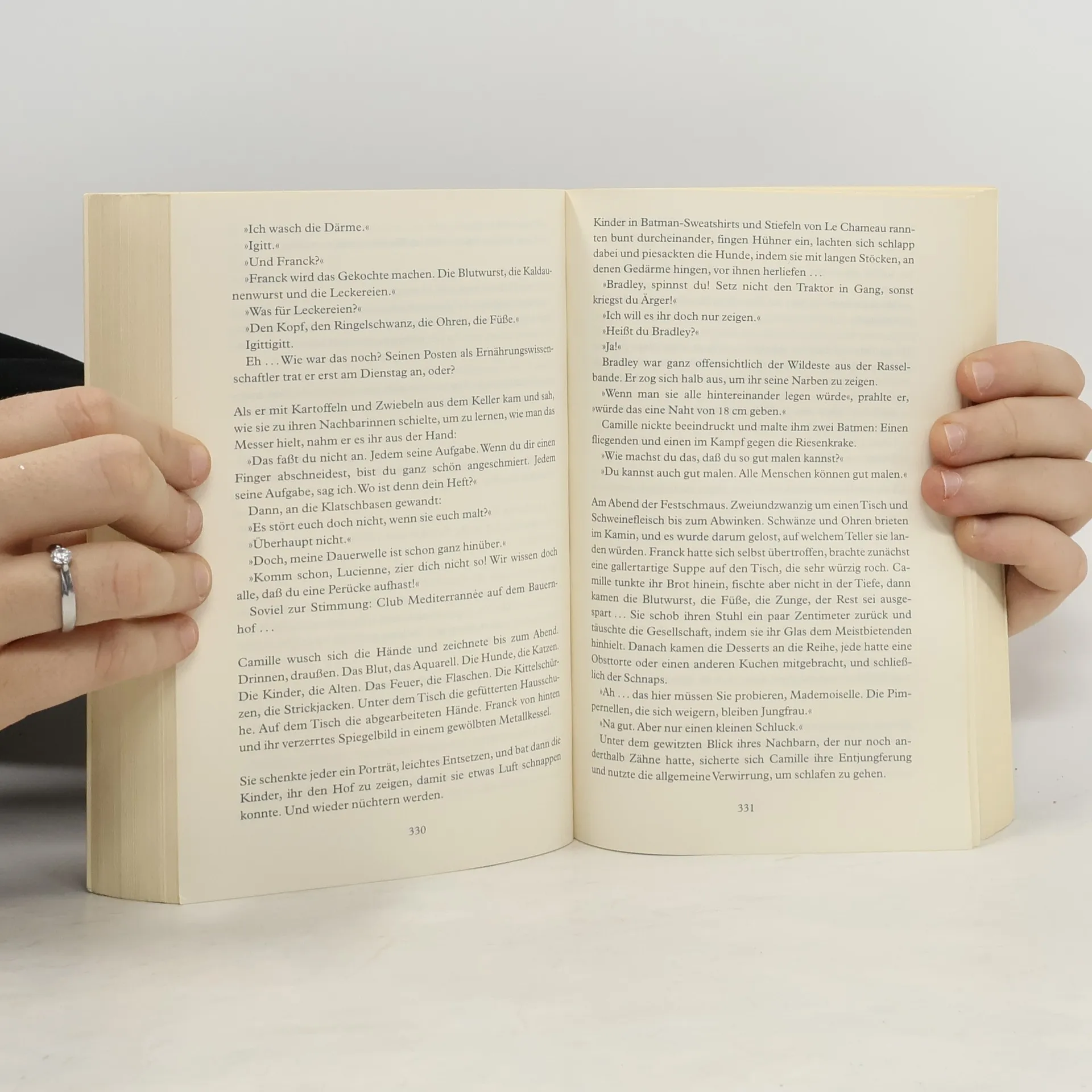 Philibert, von verarmten Adel, ist zwar ein historisches Genie, doch wenn er mit Menschen spricht, gerät er ins Stottern. Camille, magersüchtig und künstlerisch begabt, verdient sich ihren Lebensunterhalt in einer Putzkolonne, und Franck schuftet als Koch in einem Feinschmeckerlokal. Er liebt Frauen, Mototrräder und seine Großmutter Paulette, die keine Lust aufs Altersheim hat. Vier grundverschiedene Menschen in einer verrückten Pariser Wohngemeinschaft, die sich lieben, streiten, bis die Fetzen fliegen, und versuchen, irgendwie zurecht zu kommen. »Ein herzergreifender, zarter und anrührender Roman, in dem das Lachen und die Not verschwistert sind.«Le soir