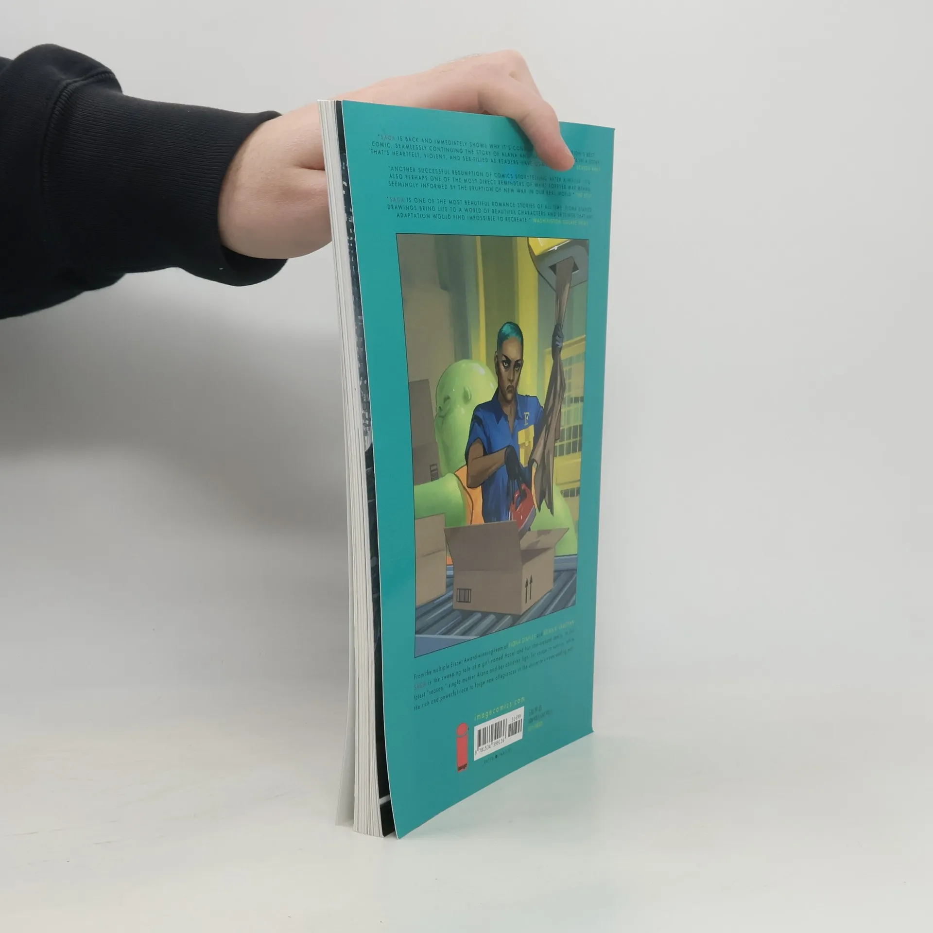 While Hazel and her family fight for scraps to survive, the rich and powerful race to forge new allegiances in the universe's never-ending war. Collects SAGA #61-66. Romeo & Juliet meets Star Wars in this genre-blending, sci-fi/fantasy space opera about star crossed lovers from enemy worlds. An epic for mature readers, Saga follows new parents Marko and Alana as they risk everything to raise their child amidst a never-ending galactic war. A multiple award winning, critically acclaimed masterpiece and one of the most iconic, bestselling comic book series of its time. The SAGA series has sold over 7 million copies to date across all formats, has been translated into 20 languages, and has garnered multiple Eisner and Harvey Awards, plus a Hugo Award, British Fantasy Award, Goodreads Choice Award, Shuster Award, Inkwell Award, Ringo Award, and more. It has been featured in such mainstream media outlets as TIME, Entertainment Weekly, The Atlantic, NPR, and beyond, and has become a pop culture phenomenon.