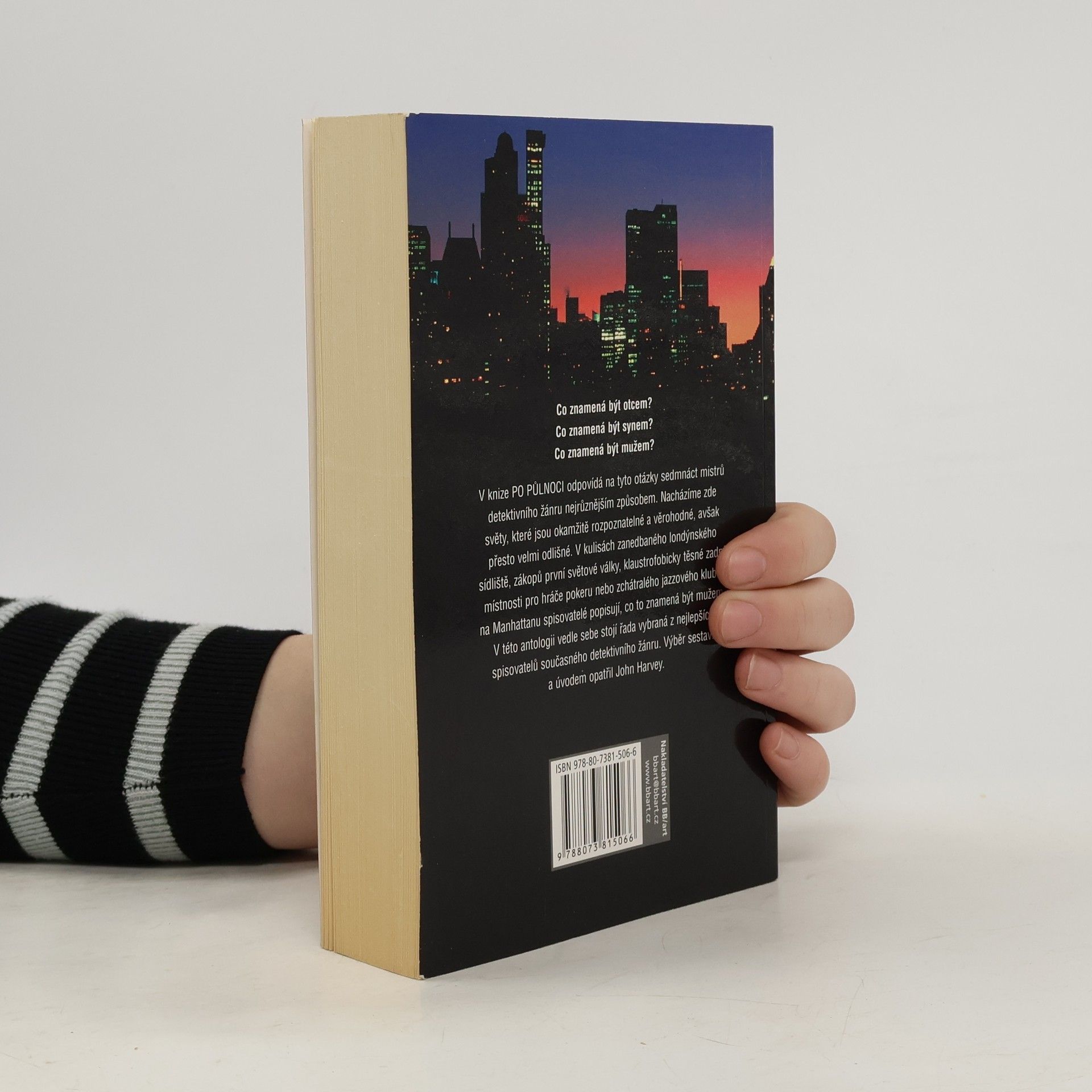 Co znamená být otcem? Co znamená být synem? Co znamená být mužem? V knize Po půlnoci odpovídá na tyto otázky sedmnáct mistrů detektivního žánru nejrůznějším způsobem. Nacházíme zde světy, které jsou okamžitě rozpoznatelné a věrohodné, avšak přesto velmi odlišné. V kulisách zanedbaného londýnského sídliště, zákopů první světové války, klaustrofobicky těsné zadní místnosti pro hráče pokeru nebo zchátralého jazzového klubu na Manhattanu spisovatelé popisují, co to znamená být mužem. Postavy z těchto povídek se snaží stanovit, co je správné, co jim dá pocit důstojnosti, co jim získá uznání a sebeúctu. Někteří jsou úspěšní, jiní selhávají. V této antologii vedle sebe stojí řada vybraná z nejlepších spisovatelů současného detektivního žánru. Výběr sestavil a úvodem opatřil John Harvey.