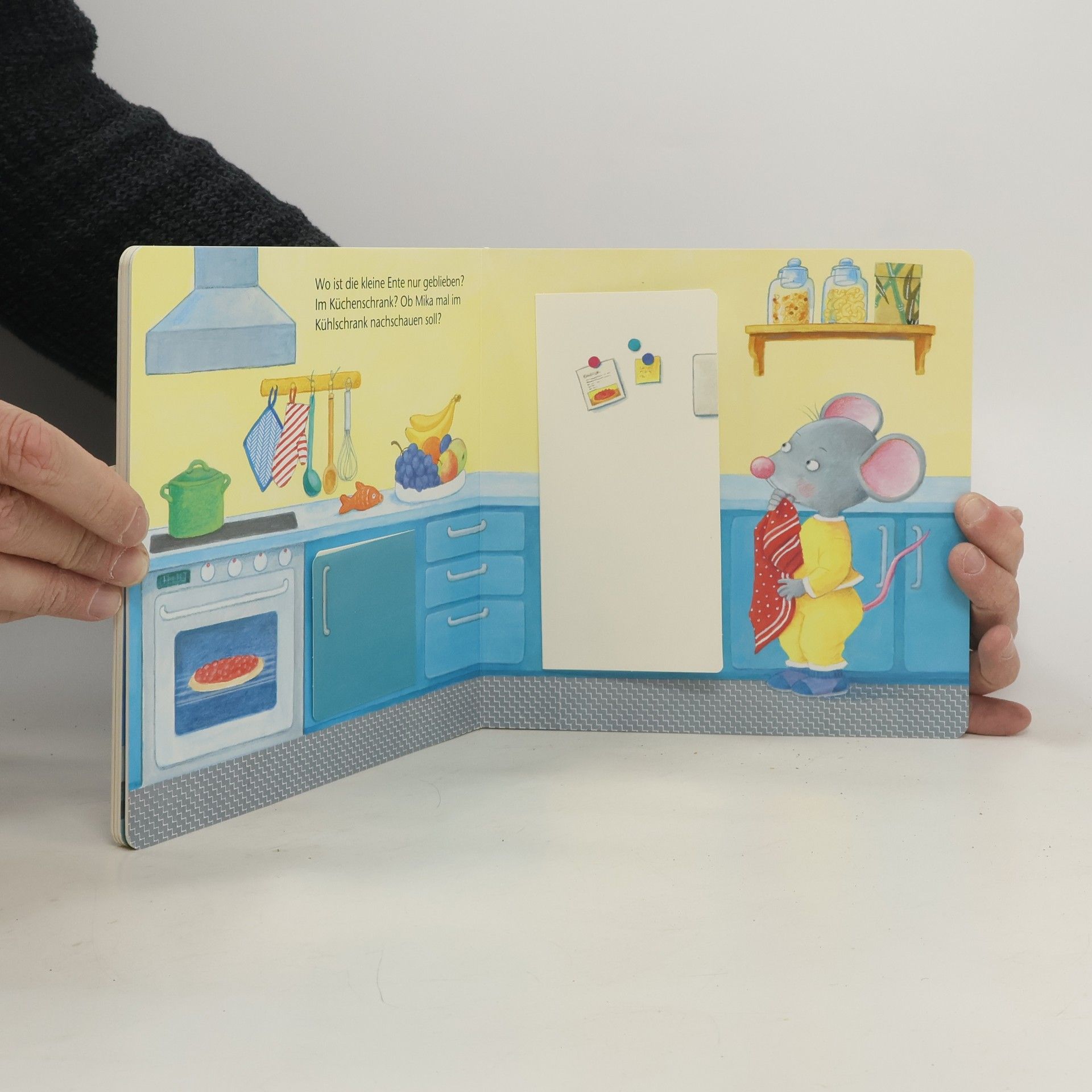 Geschichte vorlesen – Klappen öffnen – einschlafen Es ist Schlafenszeit für Maus Mika! Aber wo ist nur die Schmuseente? Ohne die kann Mika nicht einschlafen. Vielleicht unter dem Sofakissen? Im Kleiderschrank? Oder doch in der Tasche? Besonders leicht zu öffnende Klappen laden dazu ein, mit der kleinen Maus auf die Suche zu gehen. Dabei gibt es viel zu entdecken. Ob sie die kleine Ente am Ende gemeinsam finden werden? Mit Mika Maus können sich Jungen und Mädchen leicht identifizieren und sich so spielerisch aufs Schlafengehen vorbereiten.