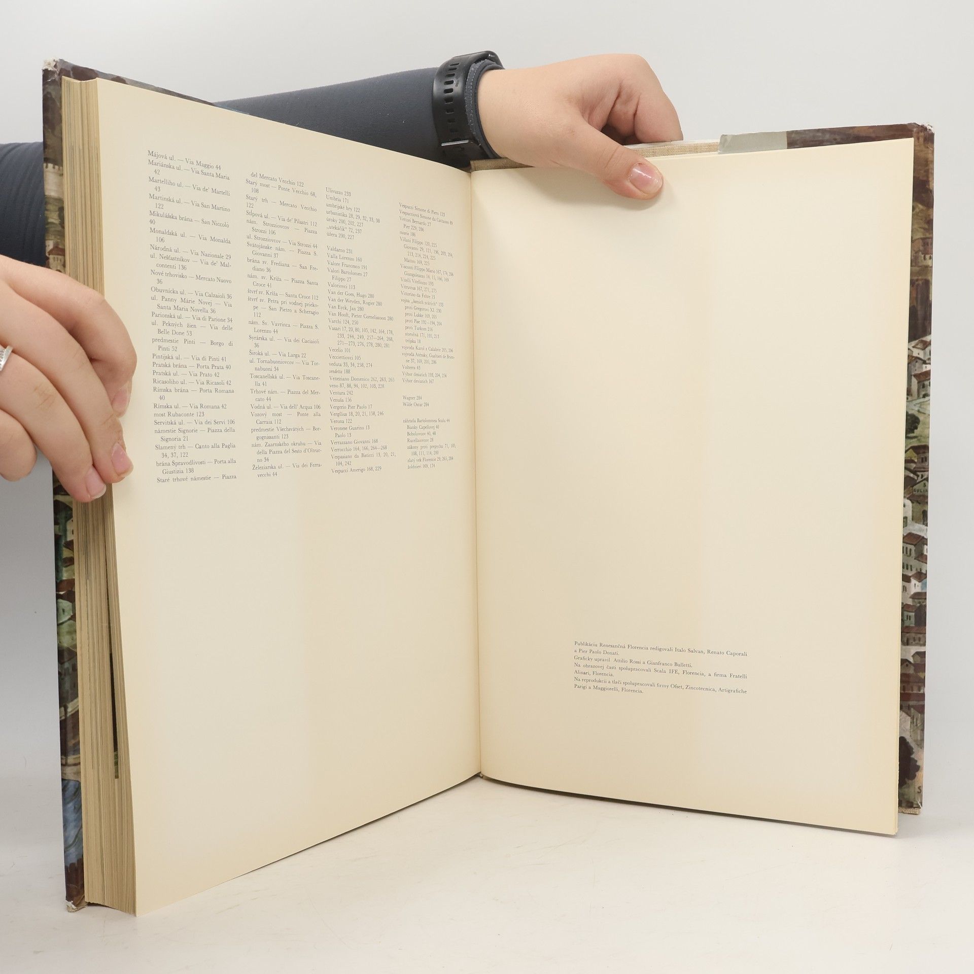 Výpravná publikácia zaoberajúca sa všetkými aspektami života renesančnej Florencie: o meste,domácnosti, rodine, náboženskom, umeleckom, politickom živote a pod.