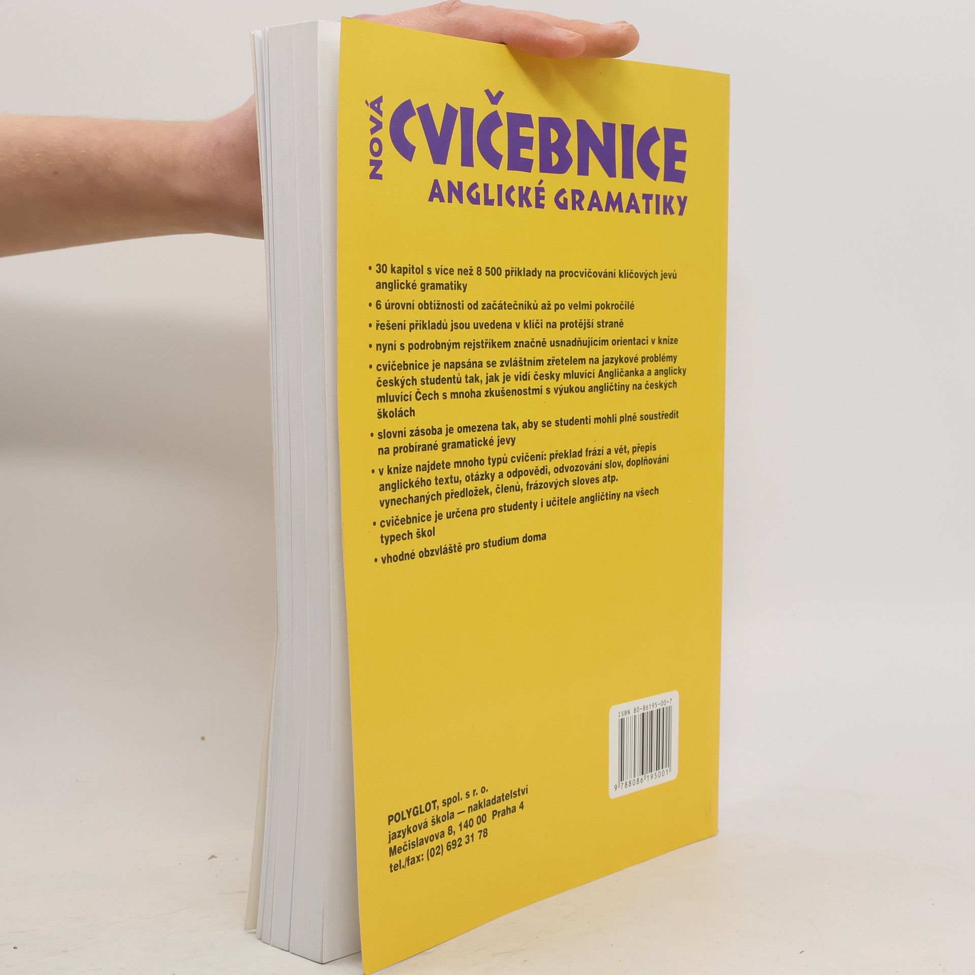 Cvičebnice je doplňkovým materiálem k jazykovým učebnicím. Neobsahuje výklad gramatiky, ale příklady k intenzivnímu procvičování gramatických a lexikálních jevů. Určena pro studenty všech úrovní, vhodná i pro samouky, neboť ke každému cvičení je na protější straně uvedeno řešení. Každá kapitola je rozdělena do několika úrovní pokročilosti. V úrovni A se procvičují jevy, s nimiž se začátečník setká zhruba v prvních měsících studia, ať už se bude učit z kterékoli učebnice. Se zvyšující se úrovní roste i lexikální náročnost cvičení. Cvičebnice svým obsahem přesahují středoškolskou úroveň. V 30 kapitolách najdete přes 8500 příkladů rozdělených do překladových a doplňovacích cvičení. Student se musí zároveň soustředit na slovní zásobu, gramatiku, slovosled, interpunkci a další aspekty jazyka. Důraz je kladen i na problémy specifické pro české studenty (časová souslednost, předložky, vazba there is / are…).... celý text