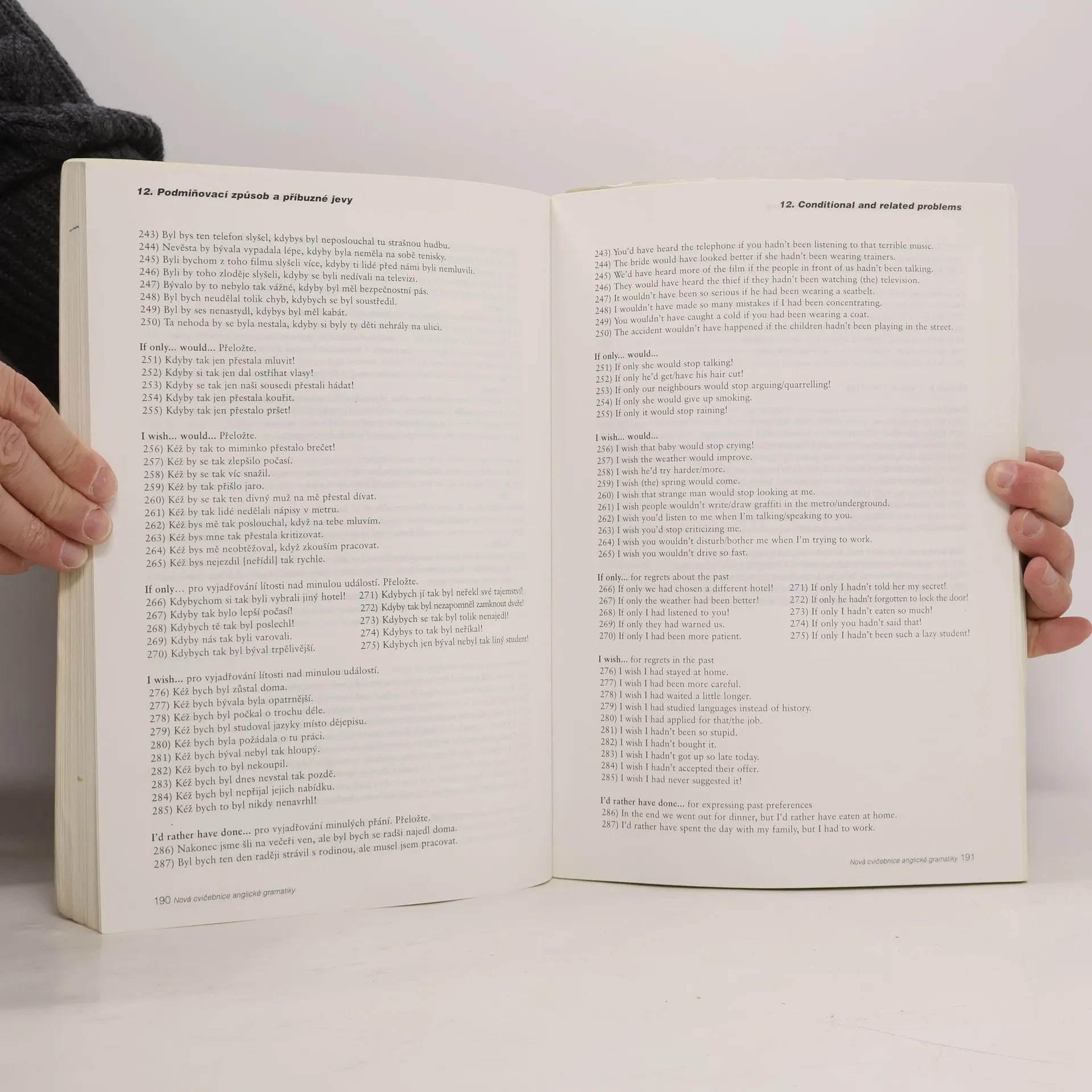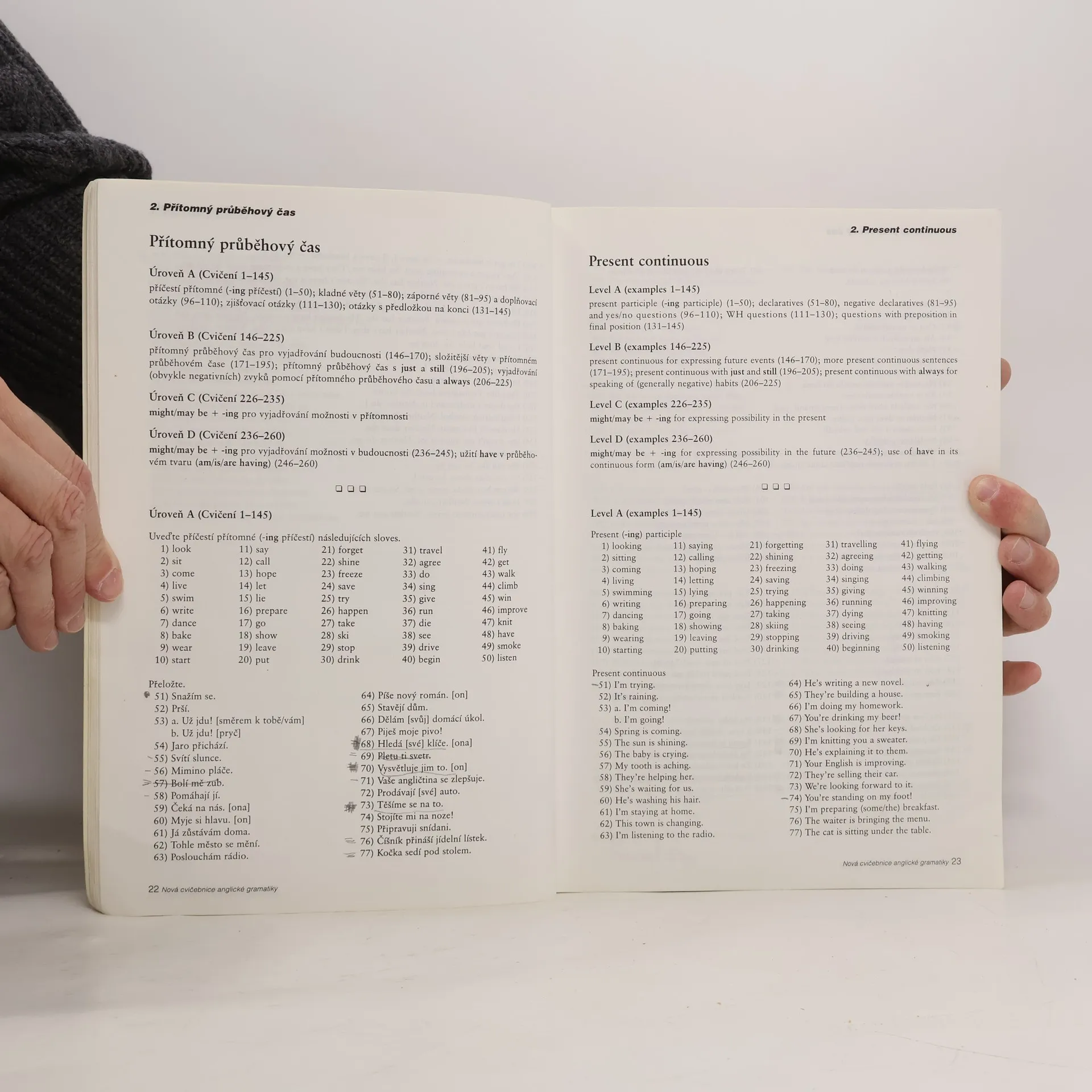 Cvičebnice je doplňkovým materiálem k jazykovým učebnicím. Neobsahuje výklad gramatiky, ale příklady k intenzivnímu procvičování gramatických a lexikálních jevů. Určena pro studenty všech úrovní, vhodná i pro samouky, neboť ke každému cvičení je na protější straně uvedeno řešení. Každá kapitola je rozdělena do několika úrovní pokročilosti. V úrovni A se procvičují jevy, s nimiž se začátečník setká zhruba v prvních měsících studia, ať už se bude učit z kterékoli učebnice. Se zvyšující se úrovní roste i lexikální náročnost cvičení. Cvičebnice svým obsahem přesahují středoškolskou úroveň. V 30 kapitolách najdete přes 8500 příkladů rozdělených do překladových a doplňovacích cvičení. Student se musí zároveň soustředit na slovní zásobu, gramatiku, slovosled, interpunkci a další aspekty jazyka. Důraz je kladen i na problémy specifické pro české studenty (časová souslednost, předložky, vazba there is / are…).... celý text