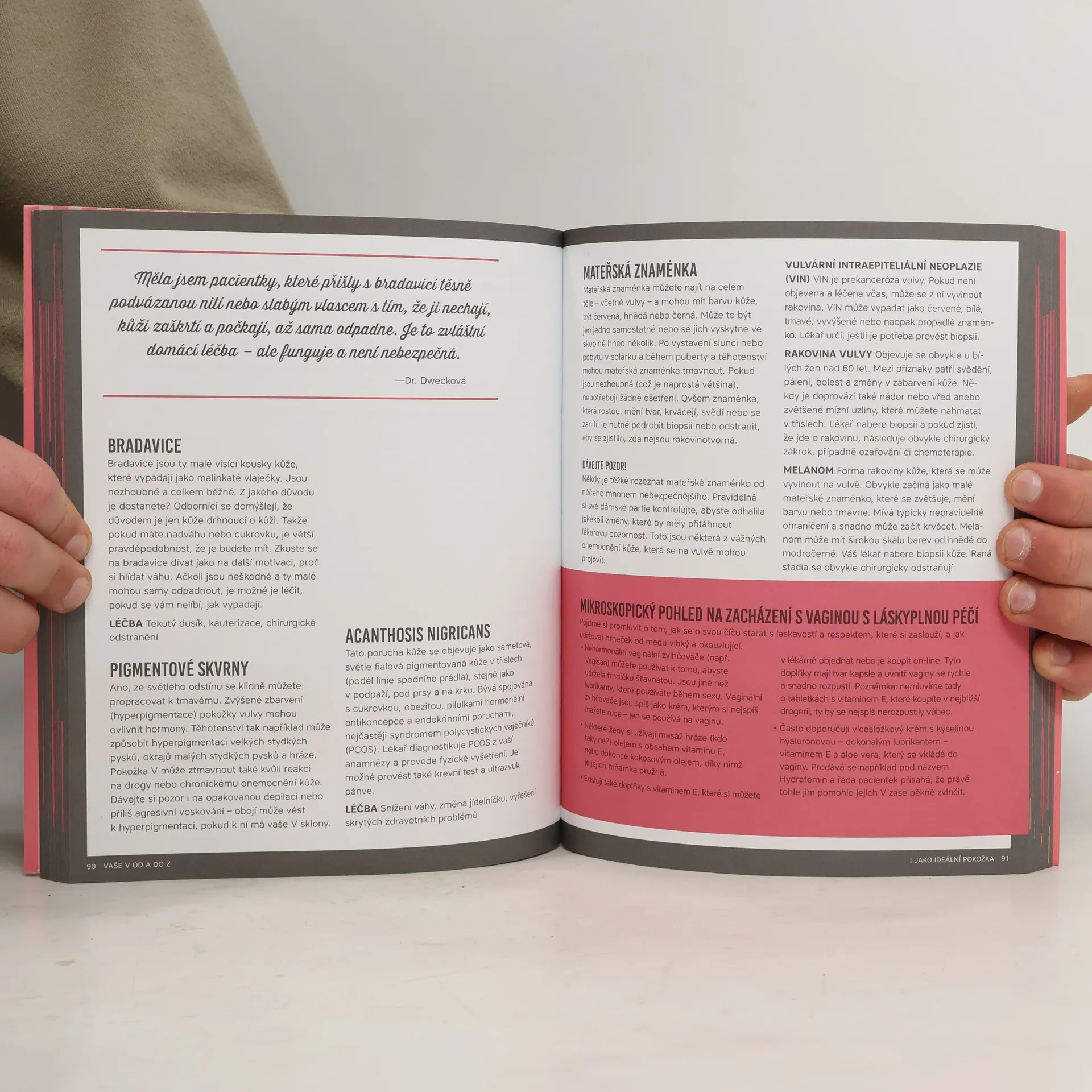 Vtipný, ale poučný průvodce k někdy tajemné a vždy úchvatné VAGINĚ! Některé z kapitol knihy jsou „lékařštější“ než jiné, ale ve všech je V. Jsou tu kapitoly, které možná některým přijdou trapné a jiné dokonce pohorší, ale buďte si jisté, že všechny informace pramení ze zkušeností, jež měla autorka, erudovaná lékařka s více než dvacetiletou praxí, to štěstí sdílet během let se svými pacientkami – zkušeností, z nichž může těžit většina žen. A tak čtěte, smějte se a učte se. Pojďme mluvit o vagině!