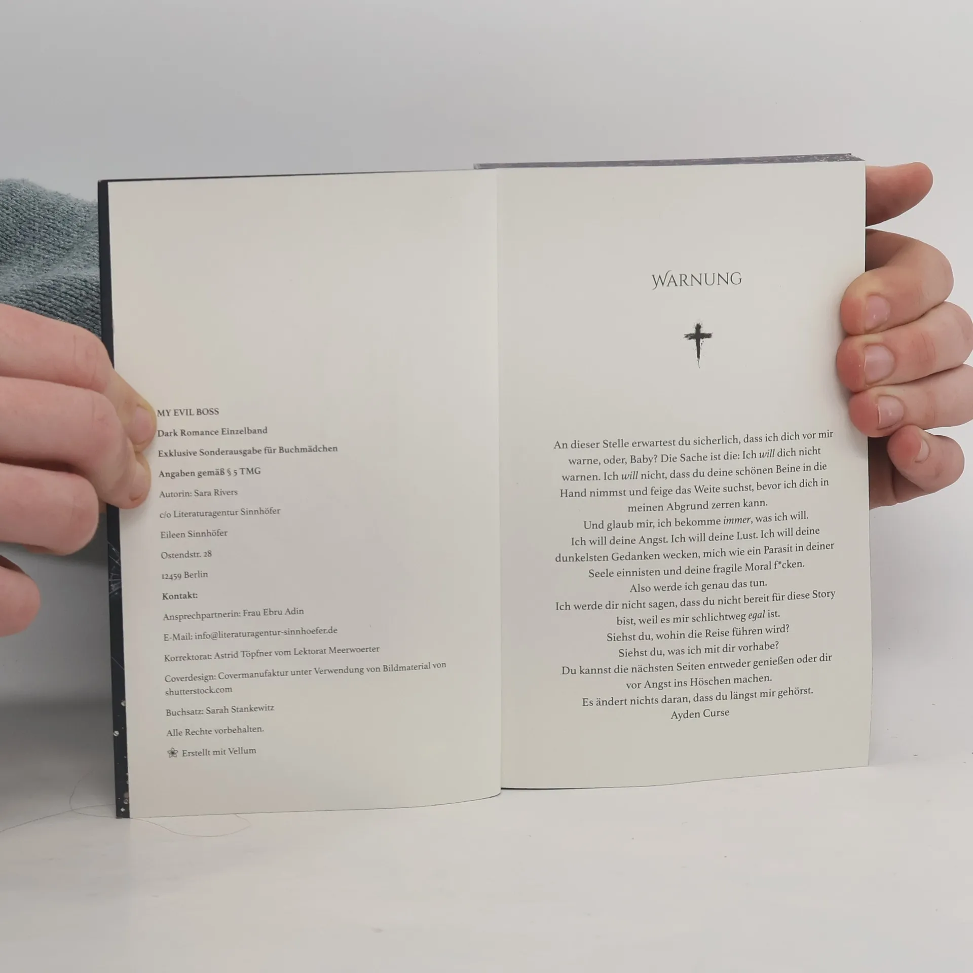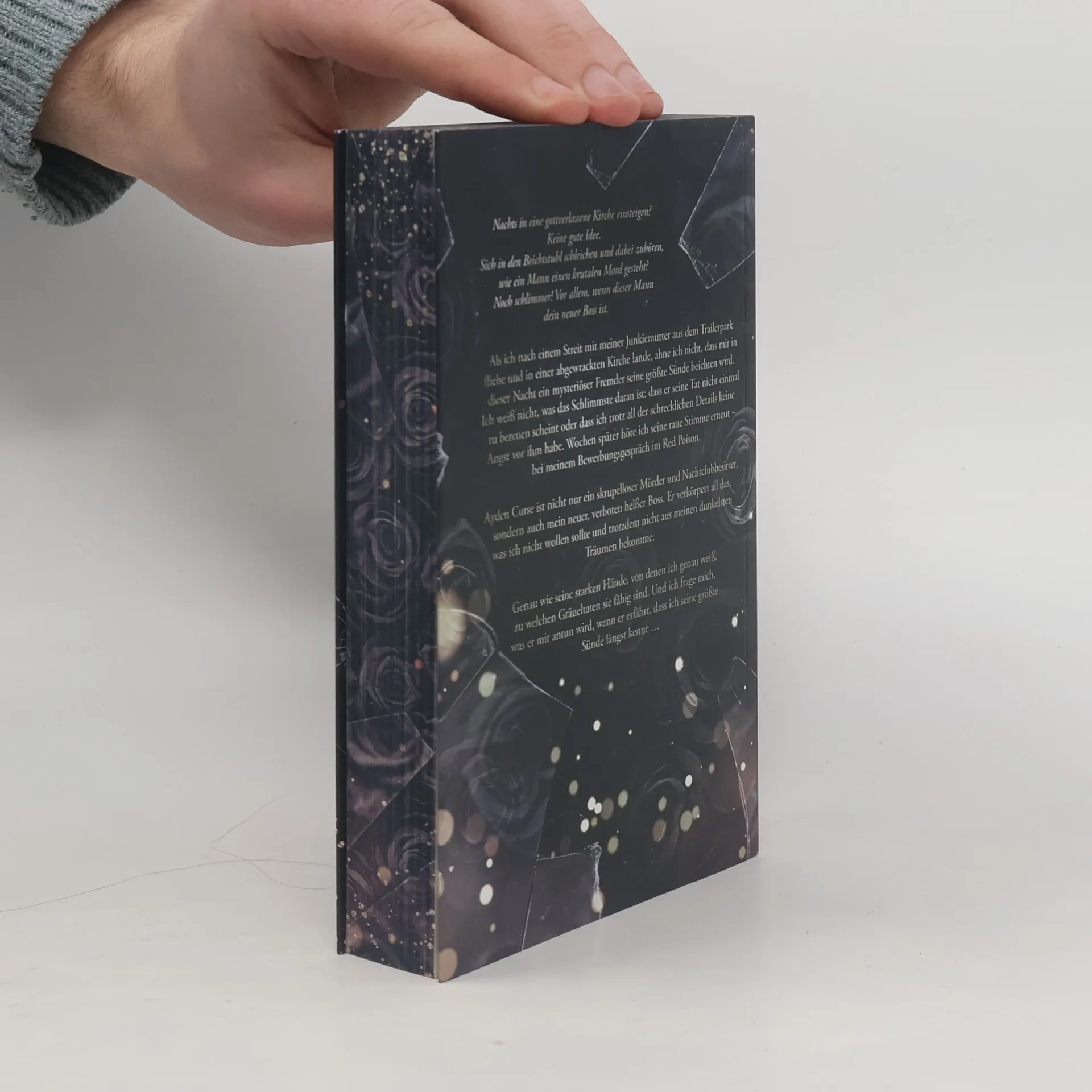 Nachts in eine gottverlassene Kirche einsteigen? Keine gute Idee. Sich in den Beichtstuhl schleichen und dabei zuhören, wie ein Mann einen brutalen Mord gesteht? Noch schlimmer! Vor allem, wenn dieser Mann dein neuer Boss ist. Als ich nach einem Streit mit meiner Junkiemutter aus dem Trailerpark ?iehe und in einer abgewrackten Kirche lande, ahne ich nicht, dass mir in dieser Nacht ein mysteriöser Fremder seine größte Sünde beichten wird. Ich weiß nicht, was das Schlimmste daran ist: dass er seine Tat nicht einmal zu bereuen scheint oder dass ich trotz all der schrecklichen Details keine Angst vor ihm habe. Wochen später höre ich seine raue Stimme erneut – bei meinem Bewerbungsgespräch im Red Poison. Ayden Curse ist nicht nur ein skrupelloser Mörder und Nachtclubbesitzer, sondern auch mein neuer, verboten heißer Boss. Er verkörpert all das, was ich nicht wollen sollte und trotzdem nicht aus meinen dunkelsten Träumen bekomme. Genau wie seine starken Hände, von denen ich genau weiß, zu welchen Gräueltaten sie fähig sind. Und ich frage mich, was er mir antun wird, wenn er erfährt, dass ich seine größte Sünde längst kenne … Dark Romance Einzelband. Nicht für schwache Nerven und sensible Leser:innen geeignet! Unbedingt Warnung beachten.
