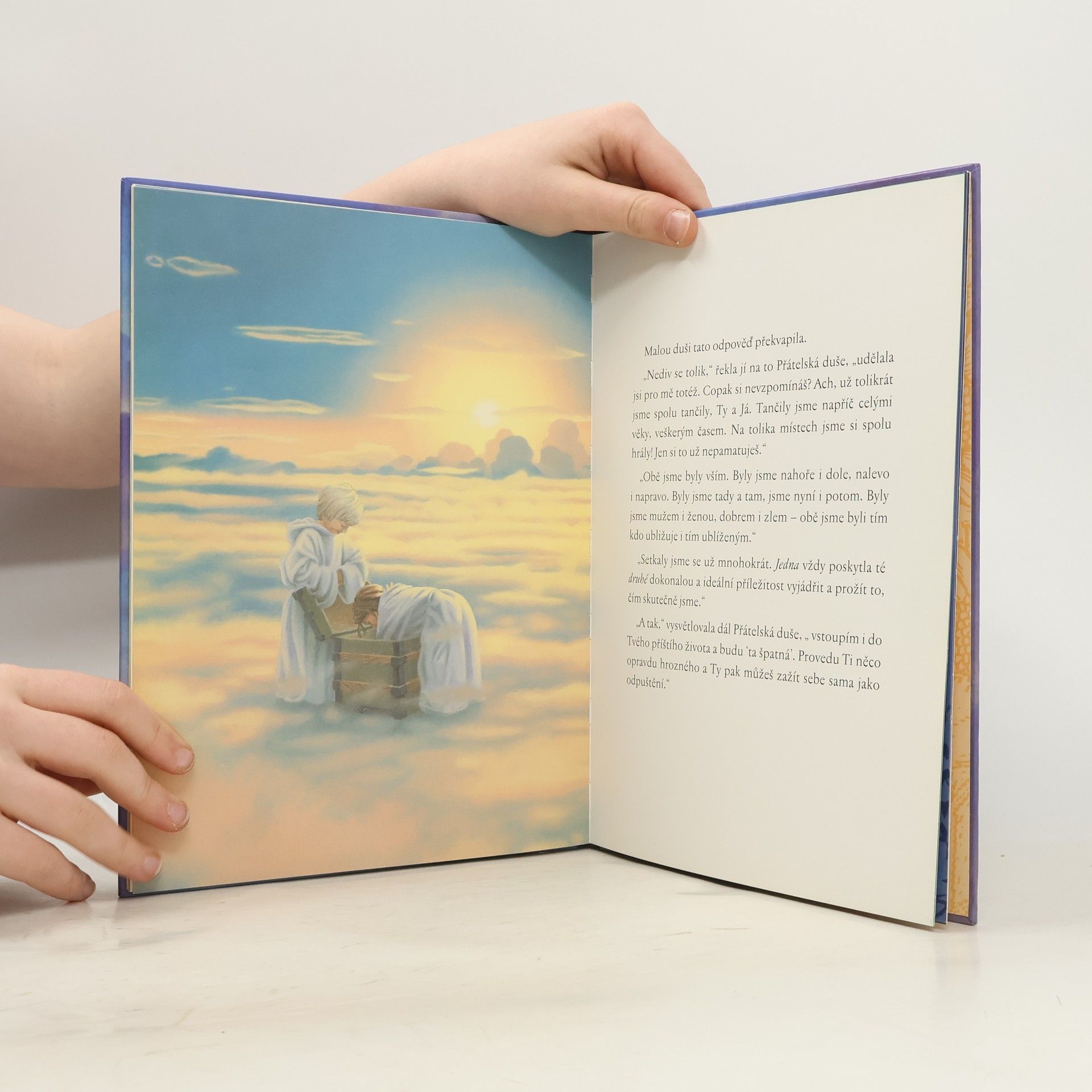 Kniha Hovory s Bohem pro děti s barevnými ilustracemi. Malá duše a Slunce je prosté a působivé vyprávění pro děti, ve kterém budou objevovat Boha, kterého mohou milovat, protože Bůh je láska – a všechny malé dušičky jsou jeho částečkami. Možná, že i rodiče u této knihy znovu objeví, kým skutečně jsou… Bylo nebylo, žila jednou jedna Malá duše. A tato Malá duše o sobě věděla, že je Světlo, jedno z milionů, trilionů Světel, která dohromady tvoří vesmír. Jenže naše Malá duše chtěla také prožít jaké to je být Světlem. A Bůh řekl, že chce-li Malá duše vědět, co je Světlo, musí nejprve poznat Tmu. Protože jak bychom poznali co je nahoře bez toho, co je dole, horké, kdyby nebylo studené a rychlé bez pomalého? Malá duše pochopila, že chce-li poznat, čím doopravdy je, musí poznat také pravý opak. „Je to veliký dar,“ řekl Bůh, „protože bez něj bys nemohla poznat, jaké věci jsou.“ A tak se Malá duše vydala na dobrodružnou cestu. Její příběh je možná hodně podobný tomu, které na planetě Zemi prožíváme my všichni.