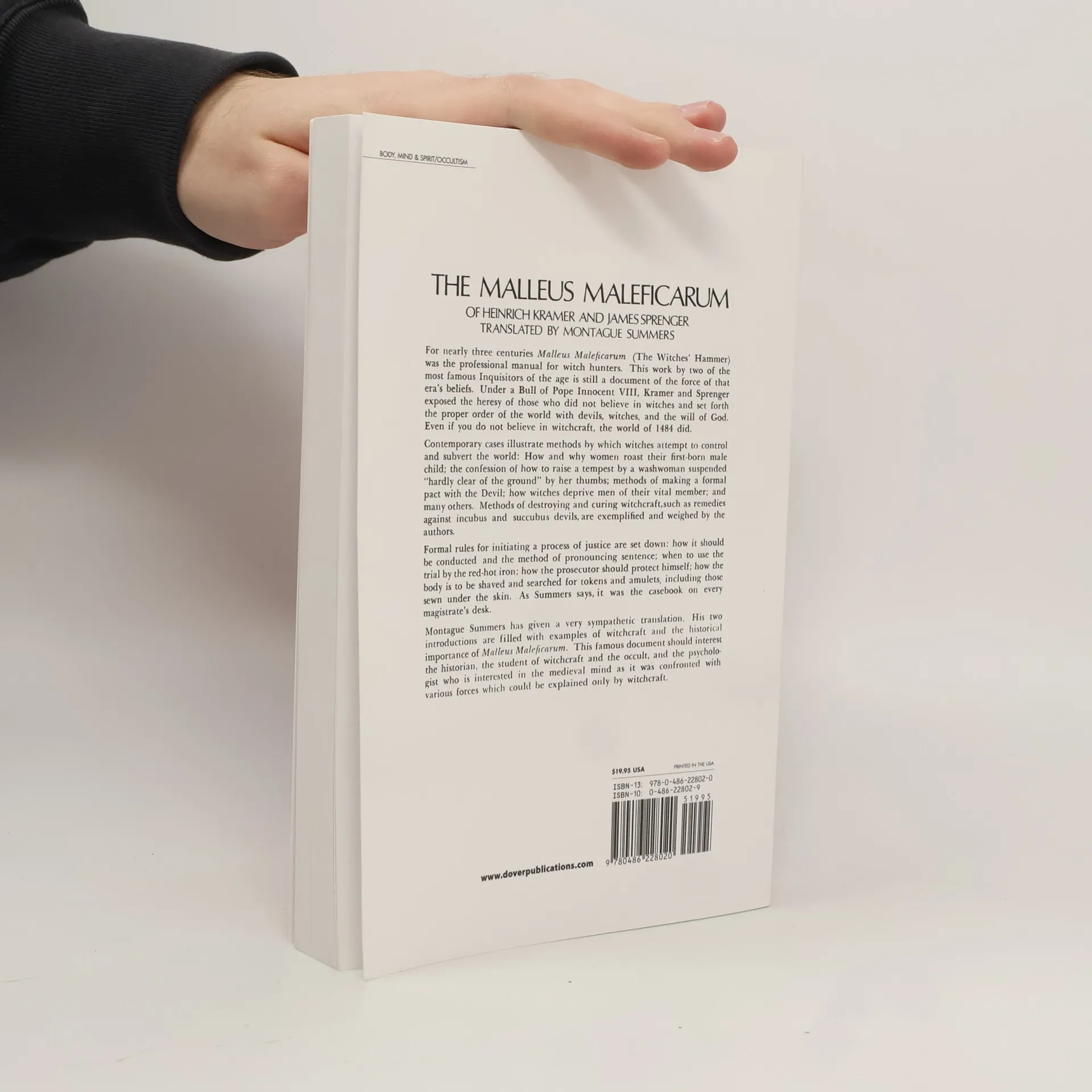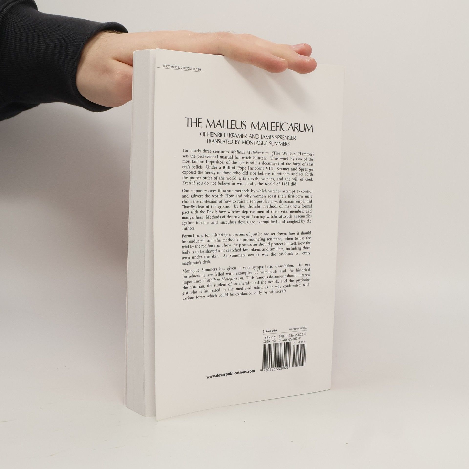 For nearly three centuries Malleus Maleficarum (the witches hammer) was the professional manual for witch hunters. This book by two of the most famous Inquisitors of the age is still a document of the force of that eras beliefs. Under a Bull of Pope Innocent VIII, Kramer and Sprenger exposed the heresy of those who did not believe in witches and set forth the proper order of the world with devils, witches, and the will of god. Even if you do not believe in the witchcraft, the world of 1484 did.