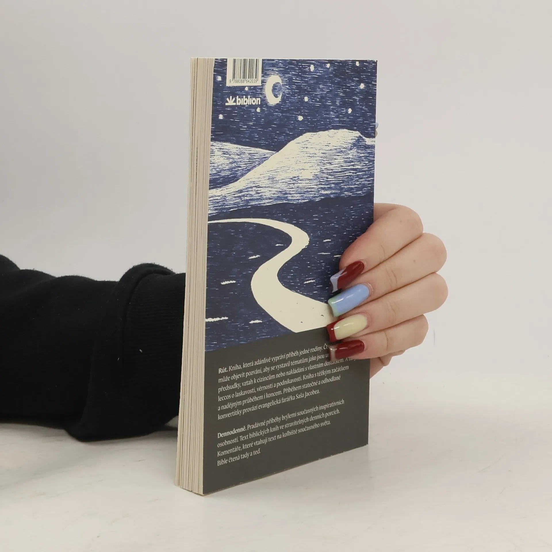 Kniha s těžkým začátkem a nadějným průběhem i koncem. Příběhem statečné a odhodlané konvertitky provází evangelická farářka Saša Jacobea. Rút. Kniha, která zdánlivě vypráví příběh jedné rodiny. Čtenář v ní však může objevit pozvání, aby se vystavil tématům jako jsou umírání a smrt, předsudky, vztah k cizincům nebo nakládání s vlastním dostatkem. A taky leccos o laskavosti, věrnosti a podnikavosti. Kniha s těžkým začátkem a nadějným průběhem i koncem. Příběhem statečné a odhodlané konvertitky provází evangelická farářka Saša Jacobea. Dennodenně. Pradávné příběhy brýlemi současných inspirativních osobností. Text biblických knih ve stravitelných denních porcích. Komentáře, které vtahují text na kolbiště současného světa. Bible čtená tady a teď.