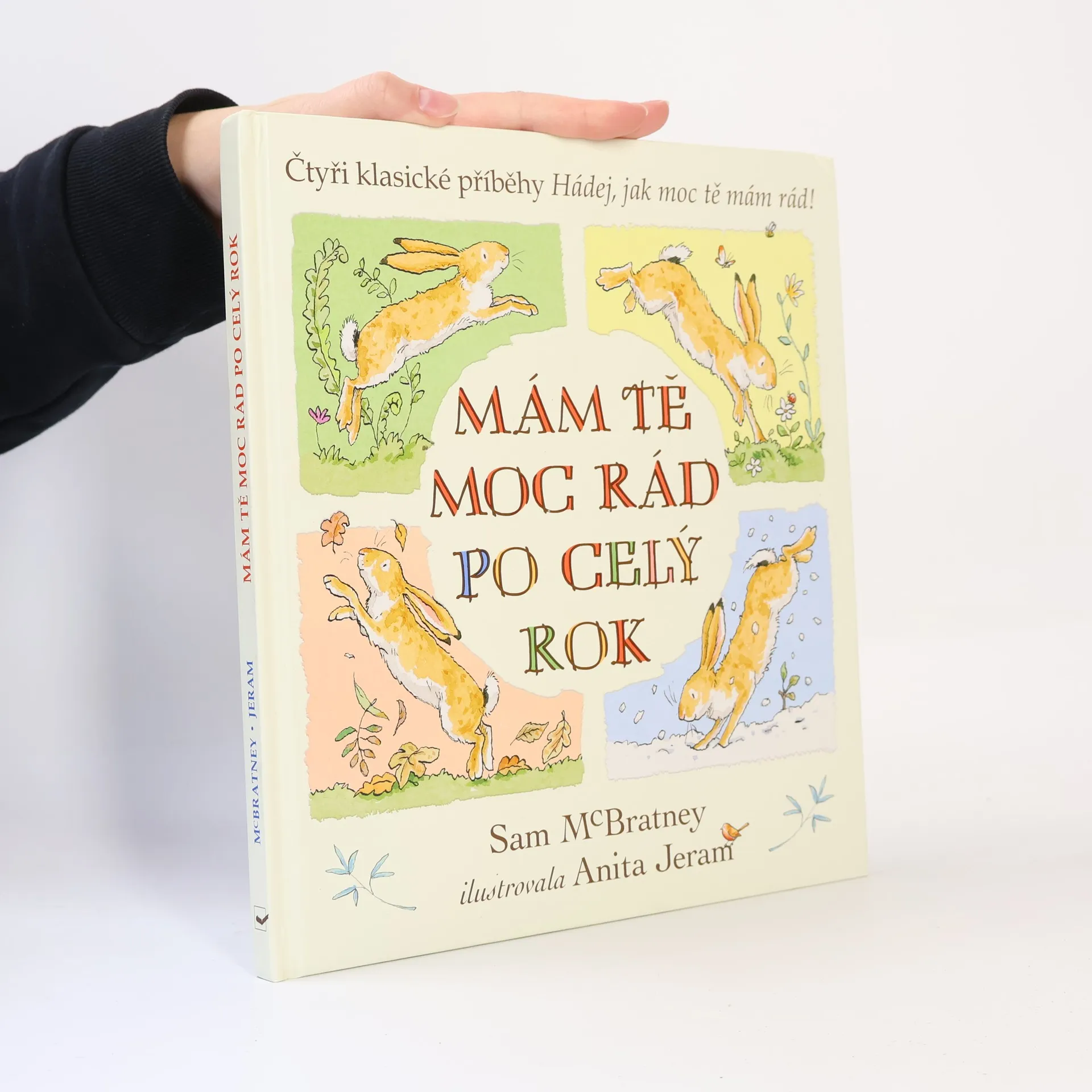 Smějte se a hrajte si s oříškově hnědým zajíčkem a s jeho tatínkem po celý rok! Čtyři příběhy - čtyři roční doby. A dva zajíčci, zažívající dobrodružství. Malý oříškově hnědý zajíček i jeho tatínek si spolu rádi hrají a smějí se po celý rok. Čtyři příběhy z průběhu celého roku od autora Sama McBratneyho se skvěle doplňují s půvabnými ilustracemi od Anity Jeram. Oříškově hnědí zajíčci známí z dětské klasiky Hádej, jak moc tě mám rád! jsou oblíbení u čtenářů mnoha generací po celém světě. Mám tě moc rád po celý rok je sbírka jejich příběhu ze čtyř ročních období, při nichž sledujeme dva zajíčky, jak zažívají nejrůznější dobrodružství, a hlavně - mají se moc rádi.