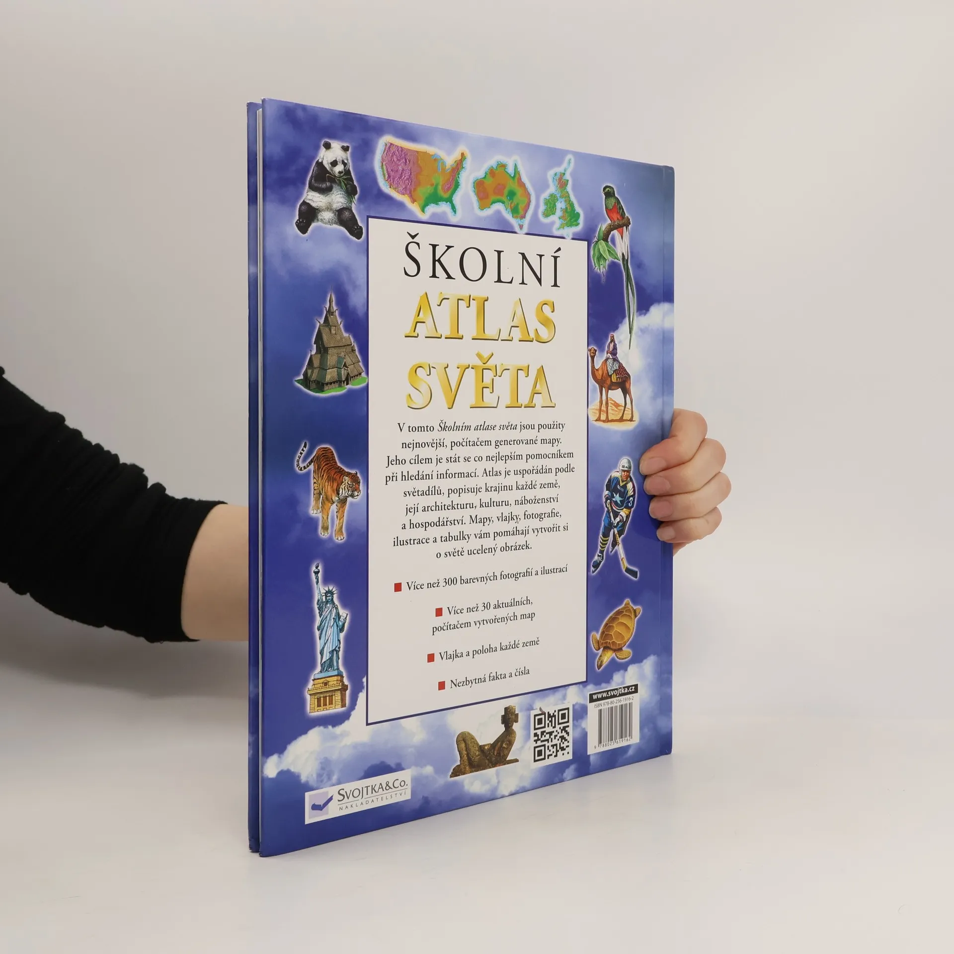 Atlas obsahuje nejnovější mapy generované na počítači. Je určen především mladším čtenářům.Atlas je uspořádán podle světadílů a přibližuje dětem život v jednotlivých částech světa. Popisuje hospodářství, průmysl, kulturu a náboženství. Kniha je bohatě ilustrována a doplněna množstvím fotografií. Součástí publikace jsou i přehledně uspořádaná základní fakta a čísla o konkrétních státech.
