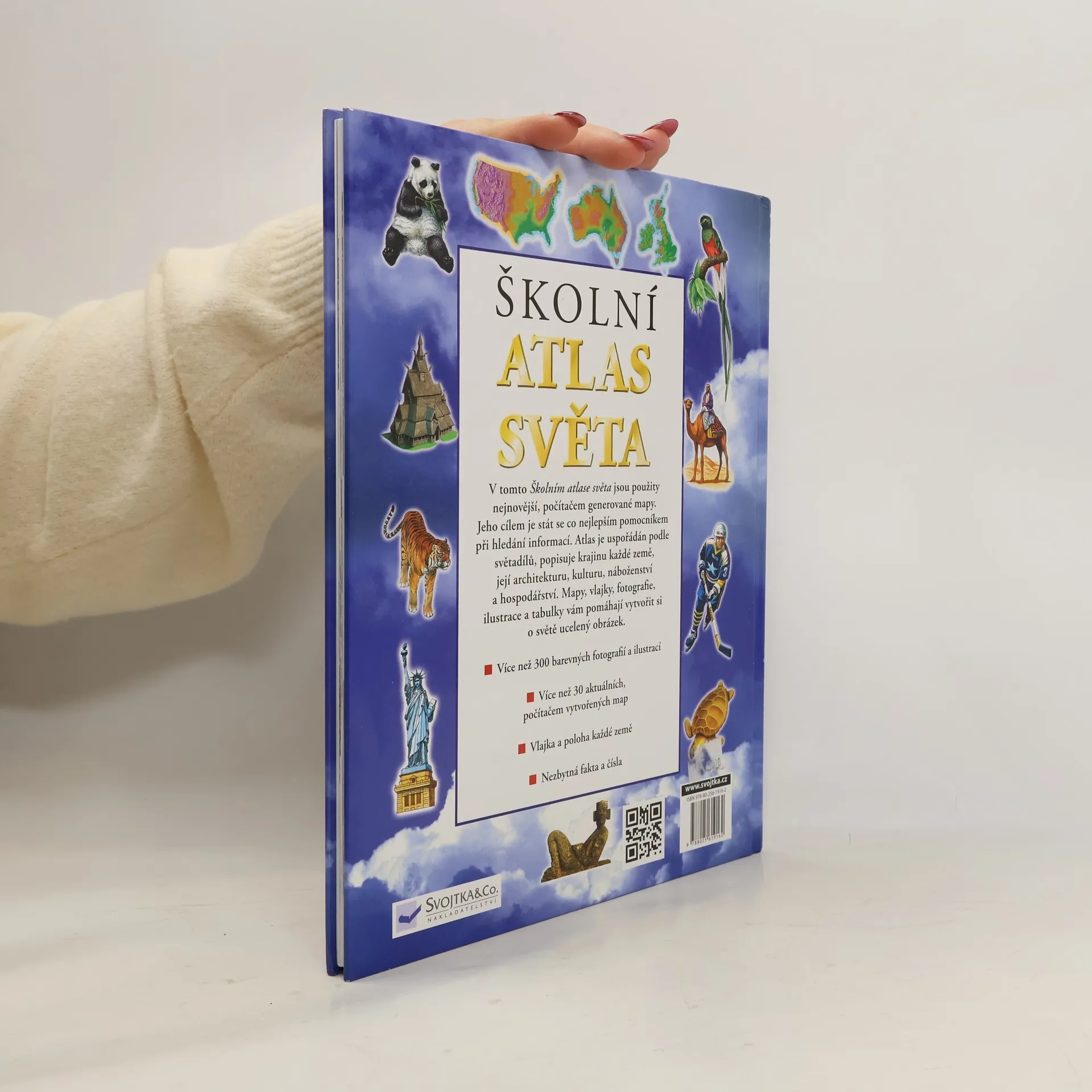 Atlas obsahuje nejnovější mapy generované na počítači. Je určen především mladším čtenářům.Atlas je uspořádán podle světadílů a přibližuje dětem život v jednotlivých částech světa. Popisuje hospodářství, průmysl, kulturu a náboženství. Kniha je bohatě ilustrována a doplněna množstvím fotografií. Součástí publikace jsou i přehledně uspořádaná základní fakta a čísla o konkrétních státech.