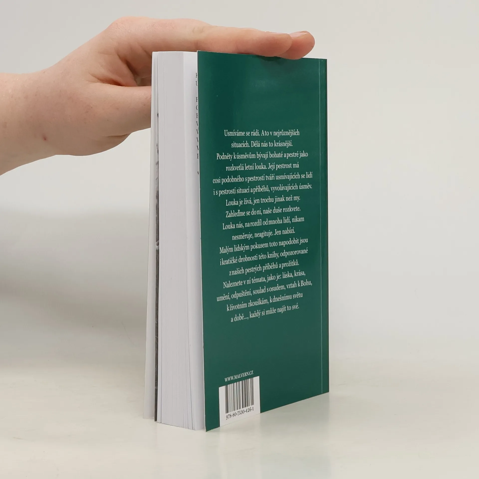 Usmíváme se rádi, že? A při nejrůznějších situacích. Zkrásňuje nás to. Podněty k úsměvům bývají bohaté, pestré, tak jako rozkvetlá letní louka. Její pestrost má cosi podobného s pestrostí tváří usmívajících se lidí, i s pestrostí situací a příběhů, vyvolávajících úsměv. Louka je živá, jen trochu jinak, než my. Zahleďme se do ní, naše duše rozkvete. Louka nás, na rozdíl od mnoha lidí, nikam nesměruje, neagituje. Jen nabízí. Malým lidským pokusem toto napodobit jsou i kratičké drobnosti této knihy, odpozorované z našich pestrých příběhů a prožitků. Vyvstanou nám pak jaksi sama od sebe třeba tato témata, kterým se kniha inspirativně věnuje: láska, krása, umění, odpuštění, duševní terapie, soulad s osudem, vztah k Bohu, k duchovním světům, k životním zkouškám, k dnešnímu světu a době…, každý podle svého výběru.