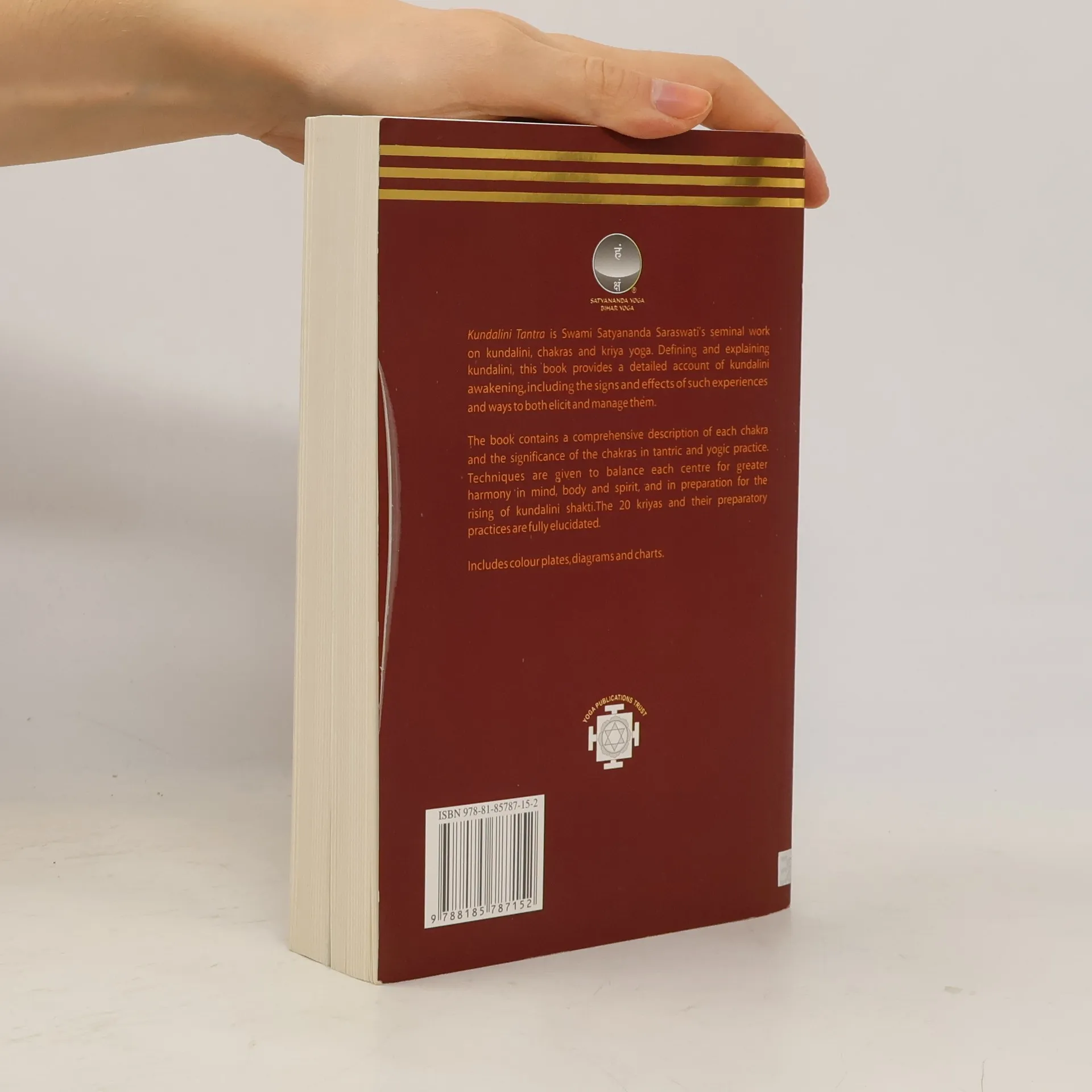 This is a totally revised Edition of Kundalini Tantra brought out by Yoga Publications Trust which has been formed as a separate entity exclusively for Publishing the Books brought out by Bihar School Of Yoga.Kundalini Yoga is a part of the tantric tradition. Even though you may have already been introduced to yoga, it is necessary to know something about tantra also. Since ancient times, the wise have realised that mind can be expanded and that experiences do not necessarily depend on the object. This means that if somebody is playing music, I can hear it, and if somebody has painted a picture, I can see it, but I can also see if there is no picture, and I can also hear if there is no music. This is also a quality of man's personality which has been ignored in the last 150 to 200 years. This Book presents a systematic and pragmatic approach to the awakening of kundalini, which arouses greater intelligence from it's sleep and you can give birth to a new range of creativity. This particular edition is brought out to commemorate the Golden Jubilee Celebrations in 2013. Includes colour plates,diagrams and charts.