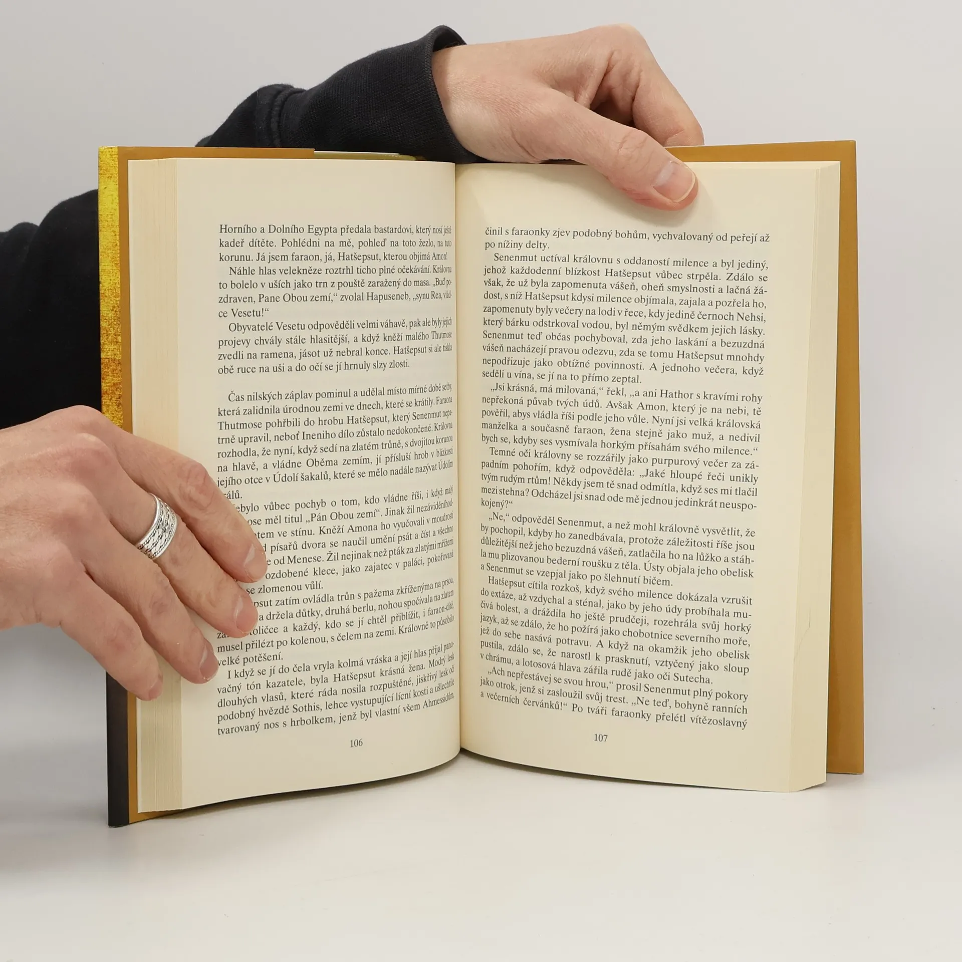 Mladá Hatšepsut, dcera Thutmose I., je nucena se ve svých čtrnácti letech provdat za nevlastního dvanáctiletého bratra Thutmose II., který je sice synem harémové dámy, avšak nejstarším dědicem trůnu. Hatšepsut je rozhodnuta udržet regentství v rodině. Po smrti nenáviděného bratra strhne moc na sebe, je korunována královnou, a stane se tak prvním ženským faraonem. Tím si však nadělá zavilé nepřátele mezi kněžími slunečního boha. Z boje o moc a vliv Hatšepsut neustále prchá ke své lásce, k všemi uctívanému vojevůdci a staviteli Senenmutovi, který navrhl početné stavby, jež ještě dnes vyprávějí o pohnuté době na březích Nilu…