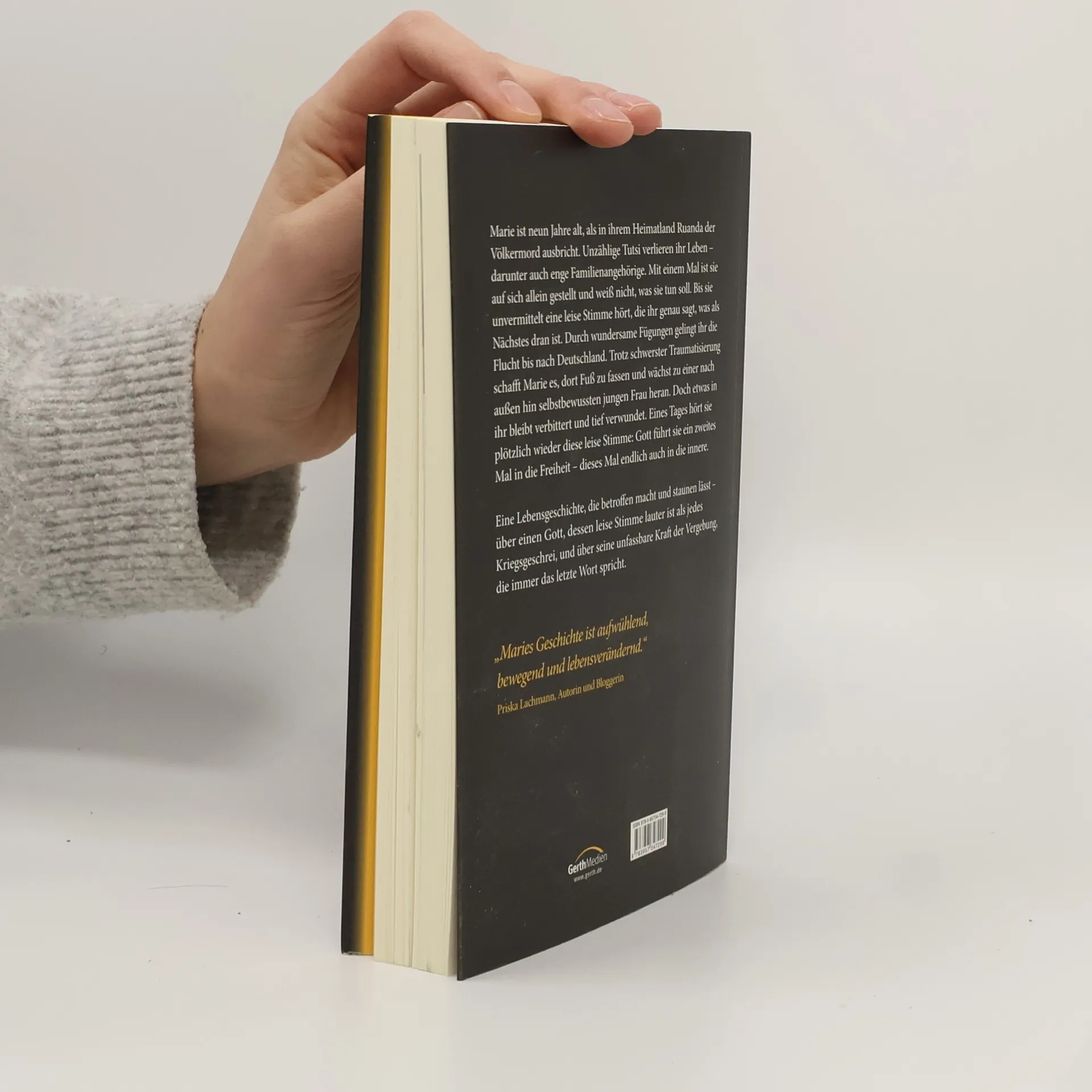 Marie ist neun Jahre alt, als in ihrem Heimatland Ruanda der Völkermord ausbricht. Unzählige Tutsi verlieren ihr Leben - darunter auch enge Familienangehörige. Mit einem Mal ist sie auf sich allein gestellt und weiß nicht, was sie tun soll. Bis sie unvermittelt eine leise Stimme hört, die ihr genau sagt, was als Nächstes dran ist. Durch wundersame Fügungen gelingt ihr die Flucht bis nach Deutschland. Trotz schwerster Traumatisierung schafft Marie es, dort Fuß zu fassen und wächst zu einer nach außen hin selbstbewussten jungen Frau heran. Doch etwas in ihr bleibt verbittert und tief verwundet. Eines Tages hört sie plötzlich wieder diese leise Stimme: Gott führt sie ein zweites Mal in die Freiheit - dieses Mal endlich auch in die innere.Eine Lebensgeschichte, die betroffen macht und staunen lässt - über einen Gott, dessen leise Stimme lauter ist als jedes Kriegsgeschrei, und über seine unfassbare Kraft der Vergebung, die immer das letzte Wort spricht.