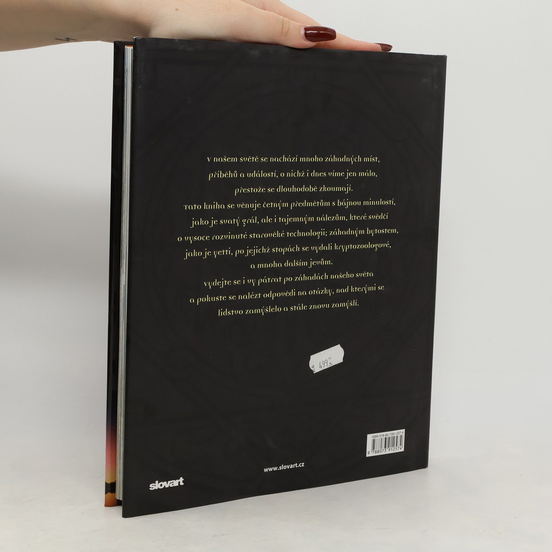 V našem světě se skrývá mnoho záhadných míst, příběhů a událostí, o nichž i dnes víme jen málo. Tato kniha se věnuje četným předmětům s bájnou minulostí, jako je svatý grál, tajemným nálezům, které svědčí o vysoce rozvinuté starověké technologii, zvířatům, jako je yetti, po jejichž stopách se vydali kryptozoologové, a mnoha dalším jevům. Vydejte se pátrat po záhadách našeho světa a nalézejte zajímavé odpovědi a výklad otázek, nad kterými se lidstvo zamýšlelo a znovu zamýšlí.