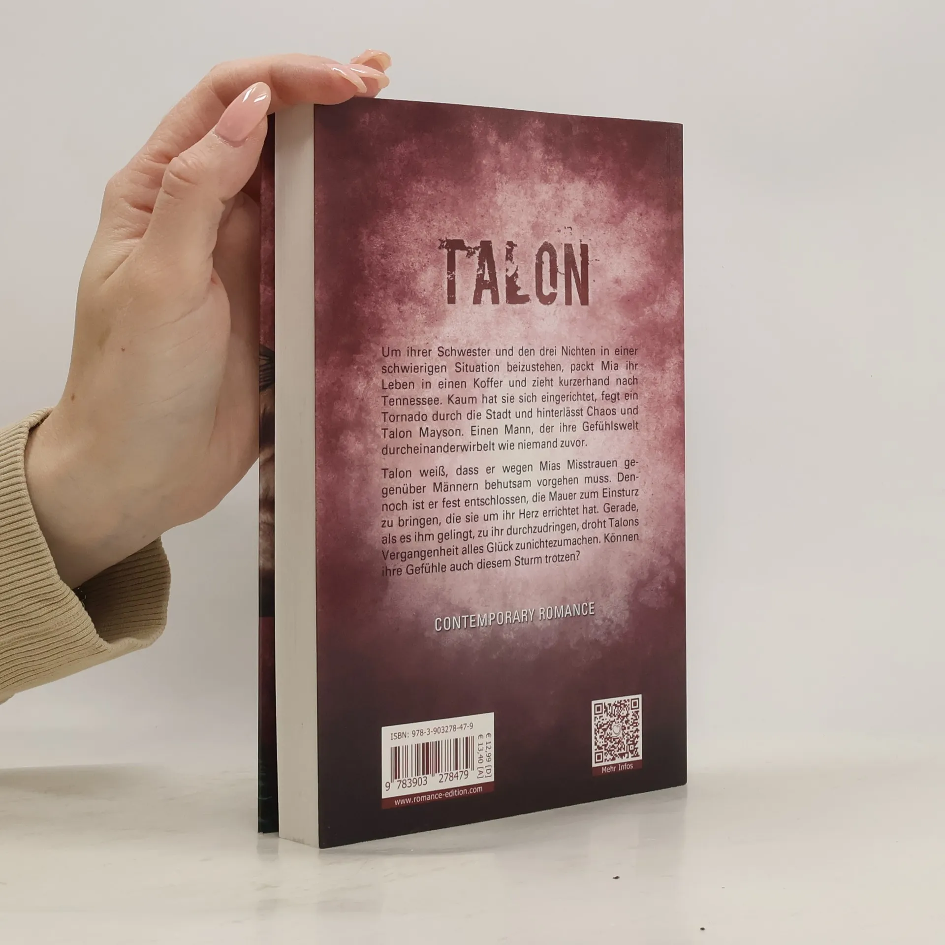 Um ihrer Schwester und den drei Nichten in einer schwierigen Situation beizustehen, packt Mia ihr Leben in einen Koffer und zieht kurzerhand nach Tennessee. Kaum hat sie sich eingerichtet, fegt ein Tornado durch die Stadt und hinterlässt Chaos und Talon Mayson. Einen Mann, der ihre Gefühlswelt durcheinanderwirbelt wie niemand zuvor. Talon weiß, dass er wegen Mias Misstrauen gegenüber Männern behutsam vorgehen muss. Dennoch ist er fest entschlossen, die Mauer zum Einsturz zu bringen, die sie um ihr Herz errichtet hat. Gerade, als es ihm gelingt, zu ihr durchzudringen, droht Talons Vergangenheit alles Glück zunichtezumachen. Können ihre Gefühle auch diesem Sturm trotzen?