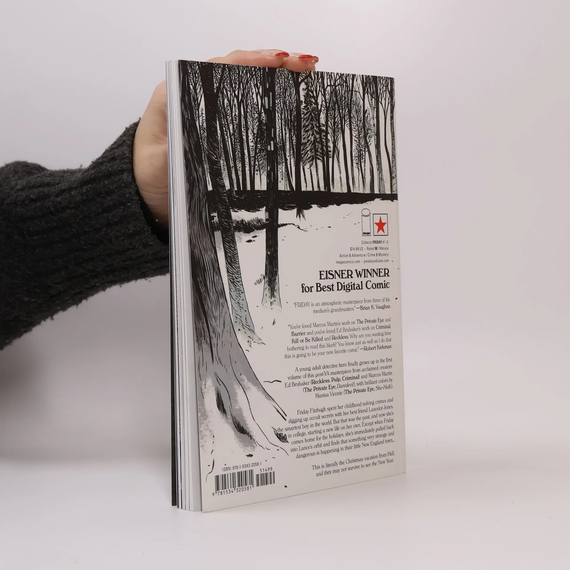 Yellowjackets meets The Chilling Adventures of Sabrina in this genre-defying, older-YA masterpiece from two of comics most acclaimed talents! A young adult detective hero finally grows up, in the first volume of this new hit series from award-winning creators Ed Brubaker (Reckless, PULP, Kill or be Killed) and Marcos Martin (The Private Eye, Daredevil), with brilliant colors by Muntsa Vicente. Friday Fitzhugh spent her childhood solving crimes and digging up occult secrets with her best friend Lancelot Jones, the smartest boy in the world. But that was the past, now she's in college, starting a new life on her own. Except when Friday comes home for the holidays, she's immediately pulled back into Lance's orbit and finds that something very strange and dangerous is happening in their little New England town... This is literally the Christmas vacation from Hell and neither of them may survive to see the New Year.
