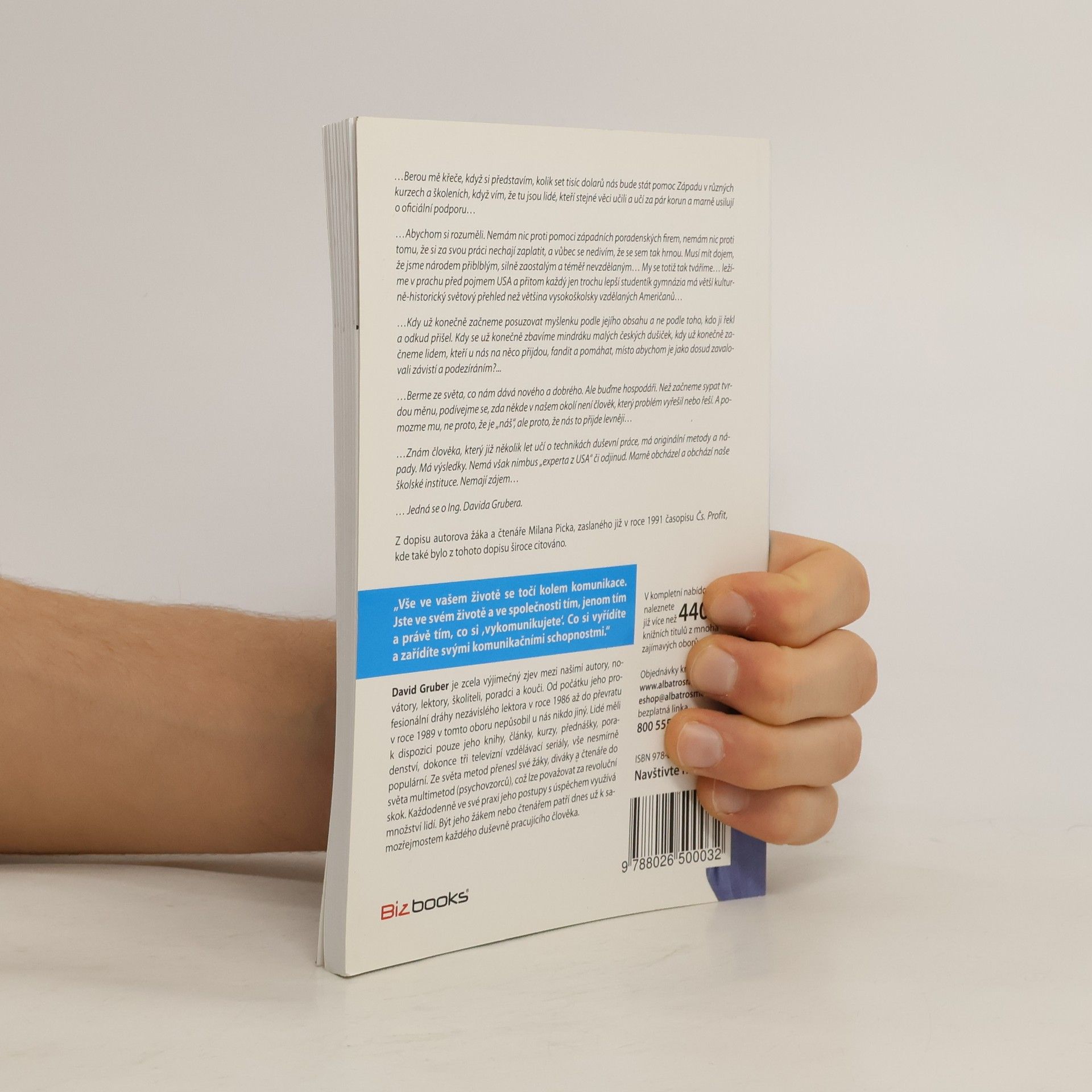 „Vše ve vašem životě se točí kolem komunikace. Jste ve svém životě a ve společnosti tím, jenom tím a právě tím, co si ,vykomunikujete‘. Co si vyřídíte a zařídíte svými komunikačními schopnostmi.“Druhé desetiletí 21. století je dobou převratných změn, které se týkají i komunikace. Je tedy potřeba se změnám přizpůsobit a co nejvíce je využít ke svému prospěchu. K tomu je nutné znát faktory ovlivňující komunikaci. David Gruber ve své nové knize formuluje čtyři klíčové faktory, které si musí duševně pracující člověk uvědomit a na které musí reagovat, aby byl úspěšný. Díky jejich znalosti a za aplikace autorovy metody psychovzorců budete na všechny změny připraveni.David Gruber je zcela výjimečný zjev mezi našimi autory, novátory, lektory, školiteli, poradci a kouči. Od počátku jeho profesionální dráhy nezávislého lektora v roce 1986 až do převratu v roce 1989 v tomto oboru nepůsobil u nás nikdo jiný. Lidé měli k dispozici pouze jeho knihy, články, kurzy, přednášky, poradenství, dokonce tři televizní vzdělávací seriály, vše nesmírně populární. Ze světa metod přenesl své žáky, diváky a čtenáře do světa multimetod (psychovzorců), což lze považovat za revoluční skok. Každodenně ve své praxi jeho postupy s úspěchem využívá množství lidí. Být jeho žákem nebo čtenářem patří dnes už k samozřejmostem každého duševně pracujícího člověka.
