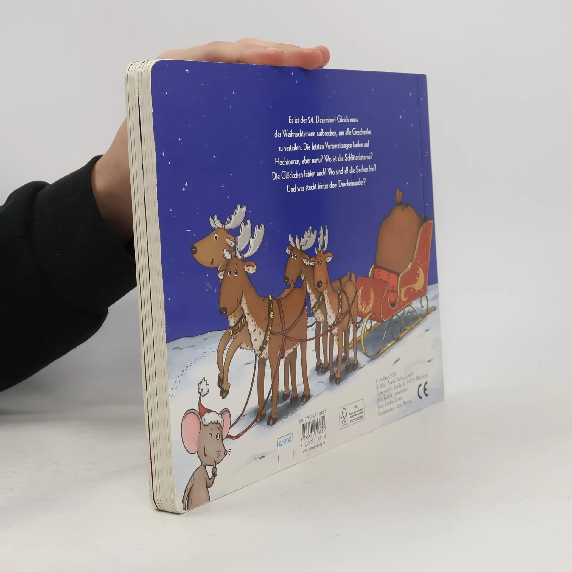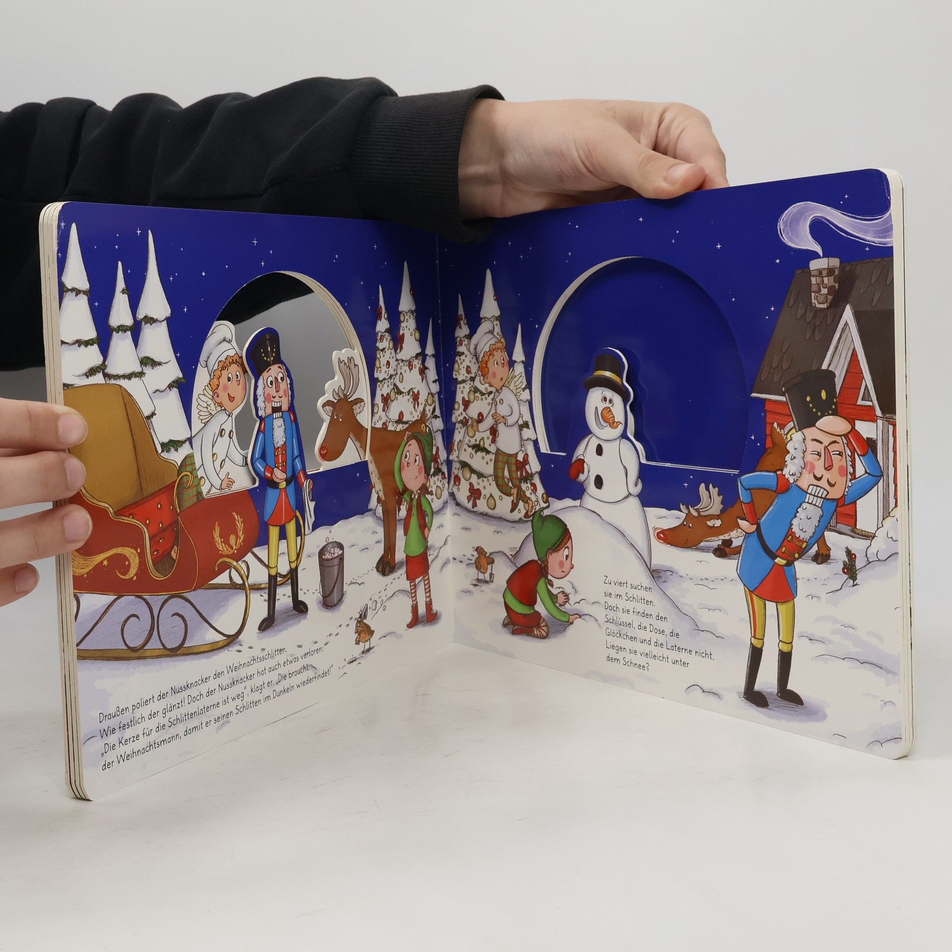 Weihnachtsgeschichte mit ausgestanzten Figuren Es ist der 24. Dezember! Bald muss der Weihnachtsmann aufbrechen, um alle Geschenke zu verteilen. Die letzten Vorbereitungen werden getroffen, aber na nu? Wo ist die Laterne des Schlittens ? Die Glöckchen fehlen auch! Mehr und mehr Dinge werden vermisst. Werden Wichtelin Willo und ihre Freunde rechtzeitig alles wiederfinden? Oder ist die Bescherung in Gefahr ? Und wer steckt nur hinter dem Durcheinander? • Die ausgestanzten Figuren werden nacheinander weggeblättert - bis der kleine Übeltäter sichtbar wird • Mit Illustrationen voller Details zum Entdecken und Freuen