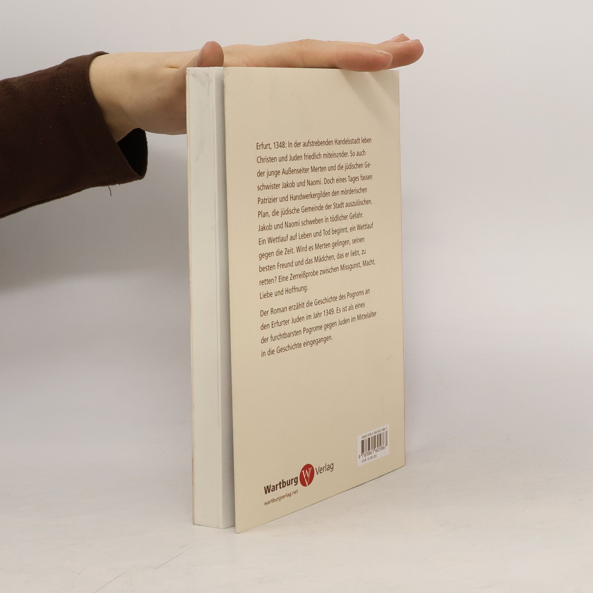 Erfurt, 1348: In der aufstrebenden Handelsstadt leben Christen und Juden friedlich nebeneinander. Doch machtpolitische Ränke drohen dieses Zusammenleben zu zerstören: Aus Missgunst und Geldgier soll die jüdische Gemeinde der Stadt ausgelöscht werden. In aller Heimlichkeit rüsten sich die Patrizier und die Gilden der Handwerker zum Mord an ihren Stadtgenossen. Für den jungen Außenseiter Merten, dessen Vater zu den Anführern der Verschwörer zählt, beginnt eine Zerreißprobe zwischen zwei Welten, denn auch das jüdische Geschwisterpaar Jakob und Naomi schweben in tödlicher Gefahr. Doch Mertens Macht, seinen besten Freund und das Mädchen, das er liebt, zu retten, ist begrenzt ... Der Roman erzählt die Geschichte des Pogroms an der jüdischen Bevölkerung der Stadt Erfurt in der Mitte des 14. Jahrhunderts. Es ist als eines der furchtbarsten Pogrome gegen Juden im Mittelalter in die Geschichte eingegangen und löschte die jüdische Gemeinde vollständig aus.