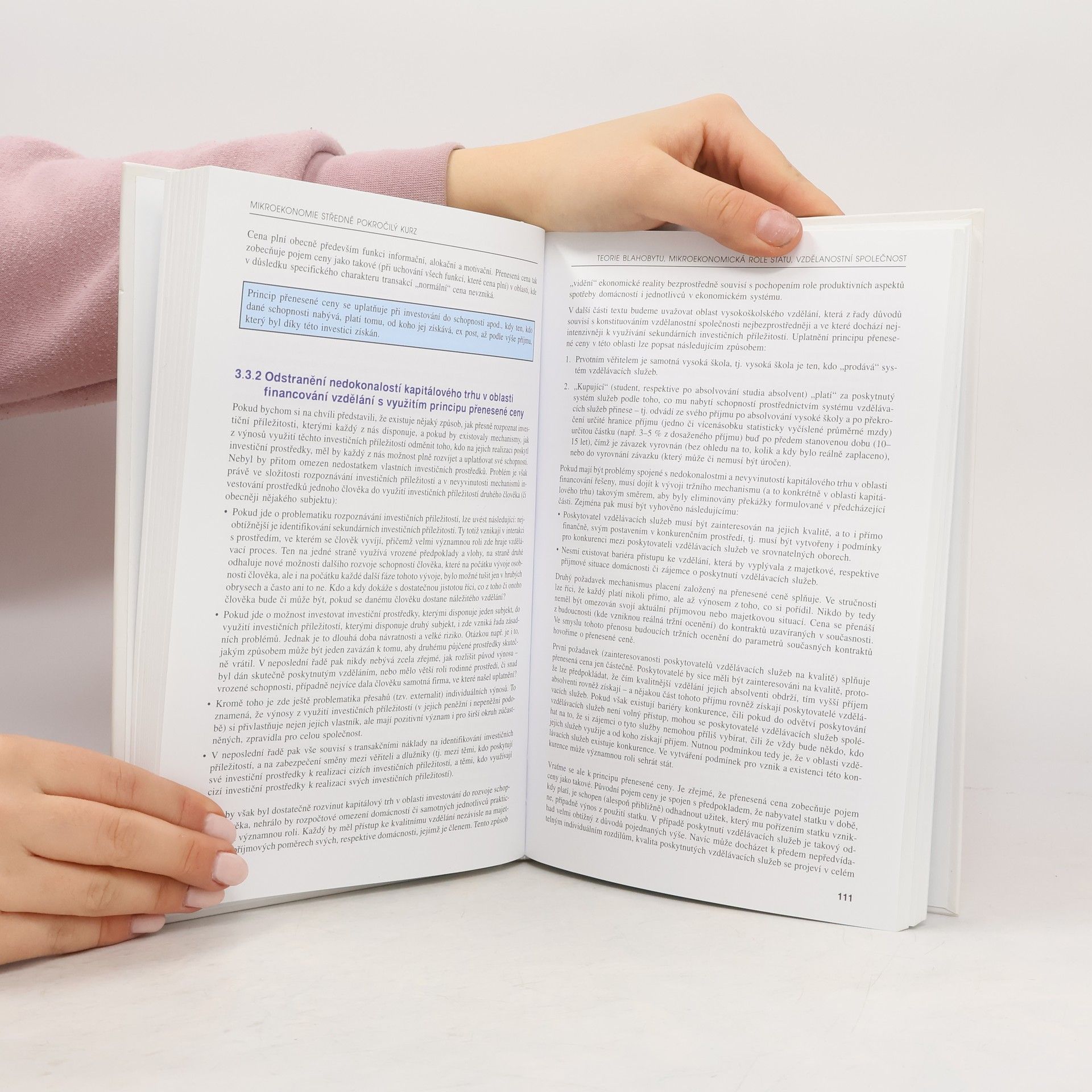 Kniha obsahuje moderní výklad mikroekonomie, který spojuje teoretické poznatky s praktickými aspekty. Čtenář se nejprve dozví, proč dochází k narušování tržní rovnováhy. Obsah publikace dále kriticky rozebírá jeden ze stěžejních kamenů mikroekonomické teorie - neoklasickou teorii užitku - a poukazuje, že spotřeba může mít produktivní charakter. Podstatná část knihy je věnována teorii rozdělování - rozboru jednotlivých faktorů, které ovlivňují výši odměny subjektů vyskytujících se na na jednotlivých trzích. Závěr knihy se zabývá teorií her, kdy je objasněno rozhodování a jednání osob v závislosti na rozhodování a jednání jiných subjektů.