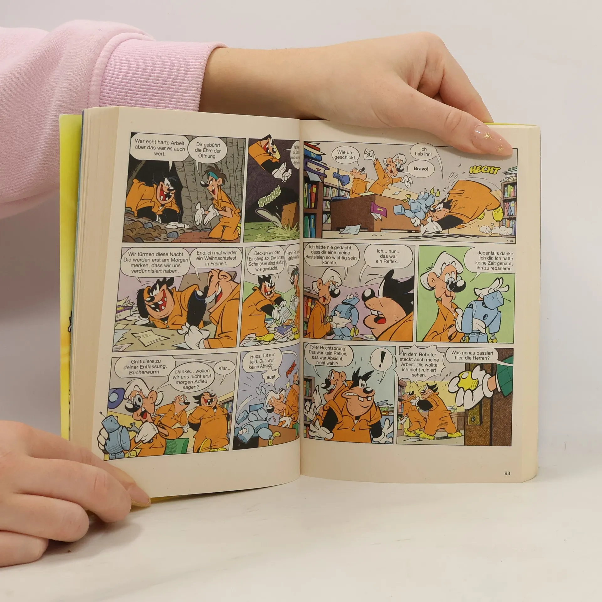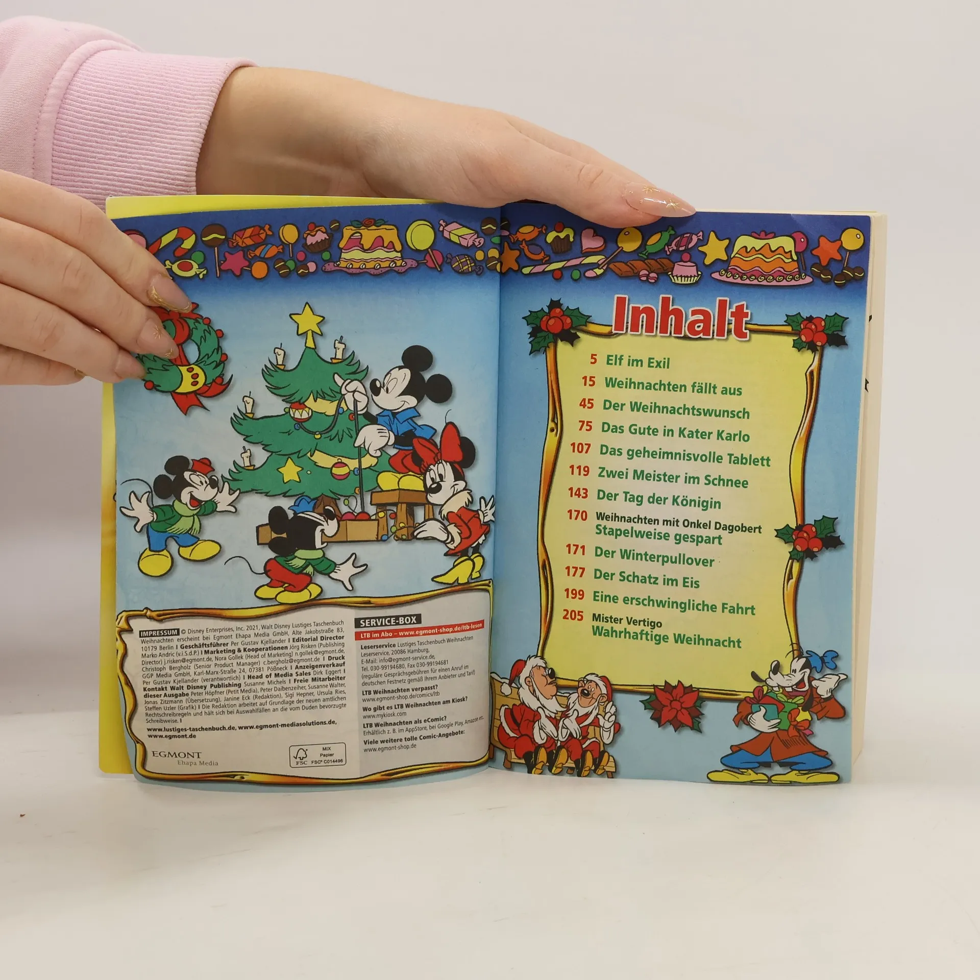 Der Duft von frisch gebackenen Plätzchen und grünen Tannenzweigen verrät es: Es weihnachtet in Entenhausen. Die Stadt hat sich herausgeputzt und strahlt im Lichterglanz! Und die Leute strahlen vor Vorfreude auf das Fest! Alle sind glücklich! Wirklich alle? Nein! Einer bläst Trübsal so kurz vor Heiligabend. Elbin der Elf hat lange für den Weihnachtsmann gearbeitet. Nun aber nicht mehr. Er sah sich gezwungen, die wundertätige Werkstatt am Nordpol für immer zu verlassen. Doch Tick, Trick und Track finden, niemand sollte so traurig sein müssen, erst recht nicht an Weihnachten. Können sie Elbin helfen?