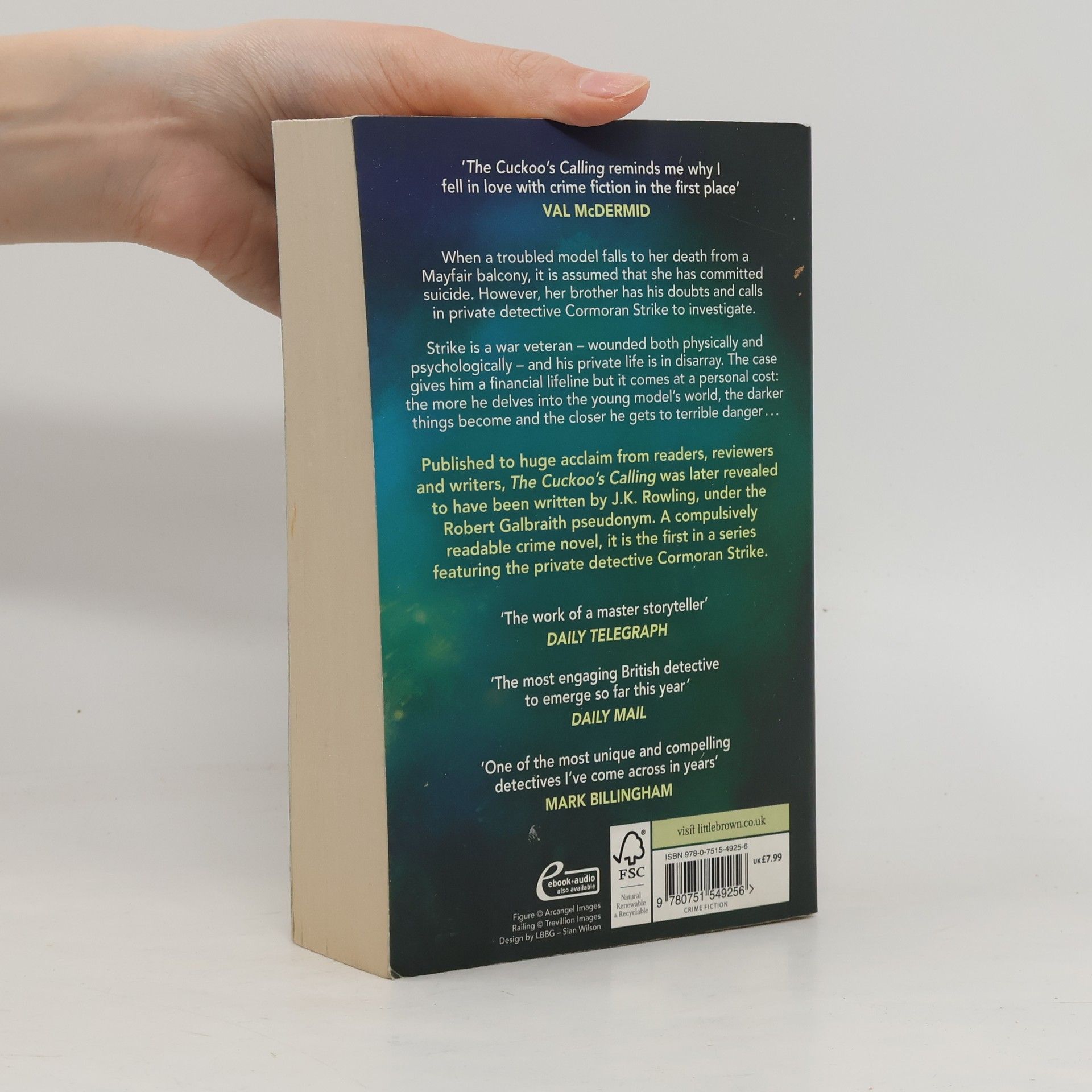 'The Cuckoo's Calling reminds me why I fell in love with crime fiction in the first place' VAL MCDERMID ----- Now a major BBC drama: The Strike series When a troubled model falls to her death from a snow-covered Mayfair balcony, it is assumed that she has committed suicide. However, her brother has his doubts, and calls in private investigator Cormoran Strike to look into the case. Strike is a war veteran - wounded both physically and psychologically - and his life is in disarray. The case gives him a financial lifeline, but it comes at a personal cost: the more he delves into the young model's complex world, the darker things get - and the closer he gets to terrible danger . . . A gripping, elegant mystery steeped in the atmosphere of London - from the hushed streets of Mayfair to the backstreet pubs of the East End to the bustle of Soho - The Cuckoo's Calling is a remarkable book. Introducing Cormoran Strike, this is the acclaimed first crime novel by J.K. Rowling, writing under the pseudonym Robert Galbraith. *** The latest book in the thrilling Strike series, LETHAL WHITE is out now! *** ----- PRAISE FOR THE STRIKE SERIES: 'One of the most unique and compelling detectives I've come across in years' MARK BILLINGHAM 'The work of a master storyteller' DAILY TELEGRAPH 'Unputdownable. . . Irresistible' SUNDAY TIMES 'Will keep you up all night' OBSERVER 'A thoroughly enjoyable classic' PETER JAMES, SUNDAY EXPRESS