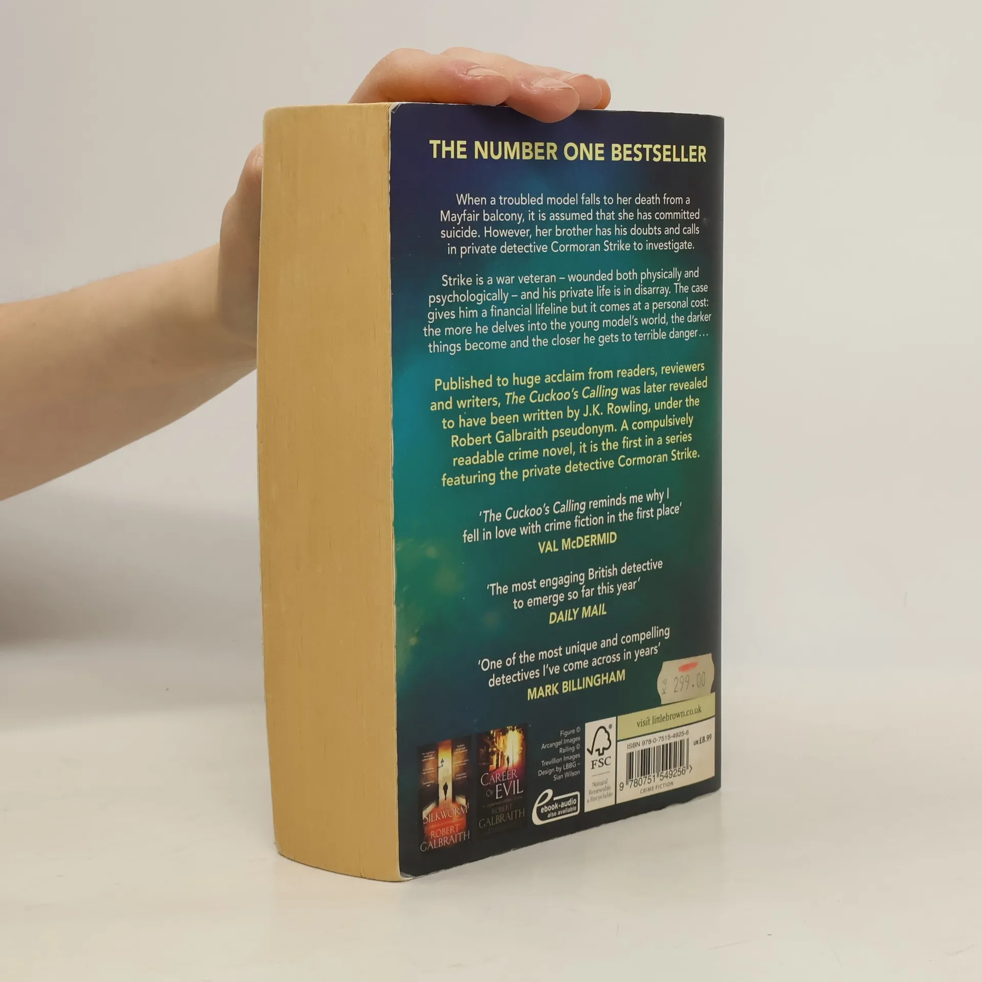 'The Cuckoo's Calling reminds me why I fell in love with crime fiction in the first place' VAL MCDERMID ----- Now a major BBC drama: The Strike series When a troubled model falls to her death from a snow-covered Mayfair balcony, it is assumed that she has committed suicide. However, her brother has his doubts, and calls in private investigator Cormoran Strike to look into the case. Strike is a war veteran - wounded both physically and psychologically - and his life is in disarray. The case gives him a financial lifeline, but it comes at a personal cost: the more he delves into the young model's complex world, the darker things get - and the closer he gets to terrible danger . . . A gripping, elegant mystery steeped in the atmosphere of London - from the hushed streets of Mayfair to the backstreet pubs of the East End to the bustle of Soho - The Cuckoo's Calling is a remarkable book. Introducing Cormoran Strike, this is the acclaimed first crime novel by J.K. Rowling, writing under the pseudonym Robert Galbraith. *** The latest book in the thrilling Strike series, LETHAL WHITE is out now! *** ----- PRAISE FOR THE STRIKE SERIES: 'One of the most unique and compelling detectives I've come across in years' MARK BILLINGHAM 'The work of a master storyteller' DAILY TELEGRAPH 'Unputdownable. . . Irresistible' SUNDAY TIMES 'Will keep you up all night' OBSERVER 'A thoroughly enjoyable classic' PETER JAMES, SUNDAY EXPRESS