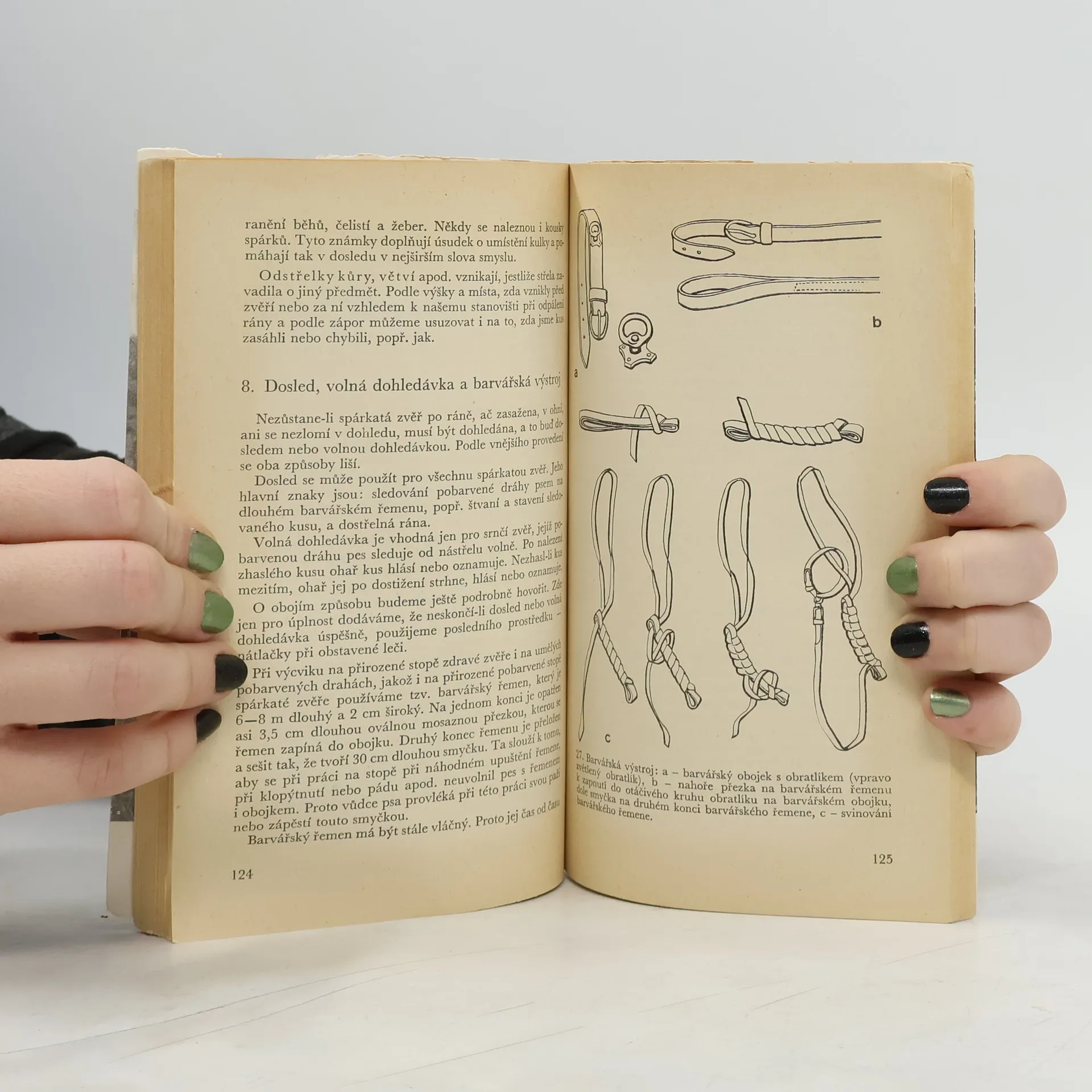 Na základě vlastní zkušenosti a experimentálních poznatků vykládá autor svou metodu výuky psa v dohledávání drobných a dosledech spárkatých zvířat. Popisuje nový způsob kladení vleček a jejich výhodnější využití, pojednává o umělé pobarvené dráze a věnuje se pak specifickým postupům při pátrání po různých druzích zvěře. Popisy jsou podrobné, názorné (s návazností obrázků) a systematické.