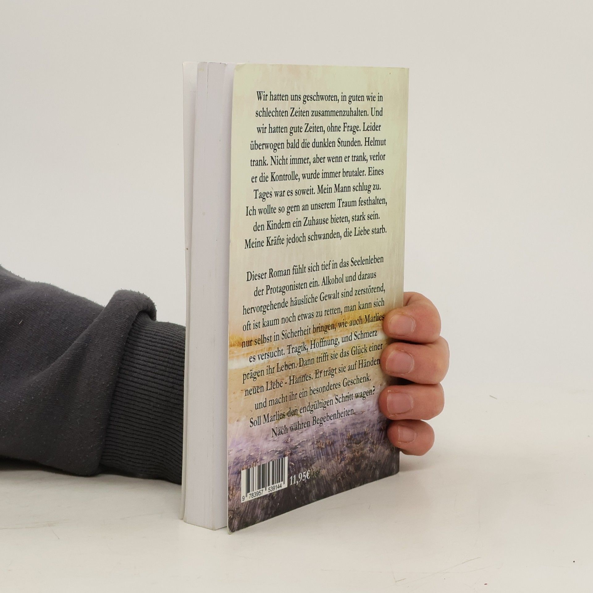 Wir hatten uns geschworen, in guten wie in schlechten Zeiten zusammenzuhalten. Und wir hatten gute Zeiten, ohne Frage. Leider überwogen bald die dunklen Stunden. Helmut trank. Nicht immer, aber wenn er trank, verlor er die Kontrolle, wurde immer brutaler. Eines Tages war es soweit. Mein Mann schlug zu. Ich wollte so gern an unserem Traum festhalten, den Kindern ein Zuhause bieten, stark sein. Meine Kräfte jedoch schwanden, die Liebe starb. Dieser Roman fühlt sich tief in das Seelenleben der Protagonisten ein. Alkohol und daraus hervorgehende häusliche Gewalt sind zerstörend, oft ist kaum noch etwas zu retten, man kann sich nur selbst in Sicherheit bringen, wie auch Marlies es versucht. Tragik, Hoffnung, und Schmerz prägen ihr Leben. Dann trifft sie das Glück einer neuen Liebe - Hannes. Er trägt sie auf Händen und macht ihr ein besonderes Geschenk. Soll Marlies den endgültigen Schritt wagen? Nach wahren Begebenheiten.