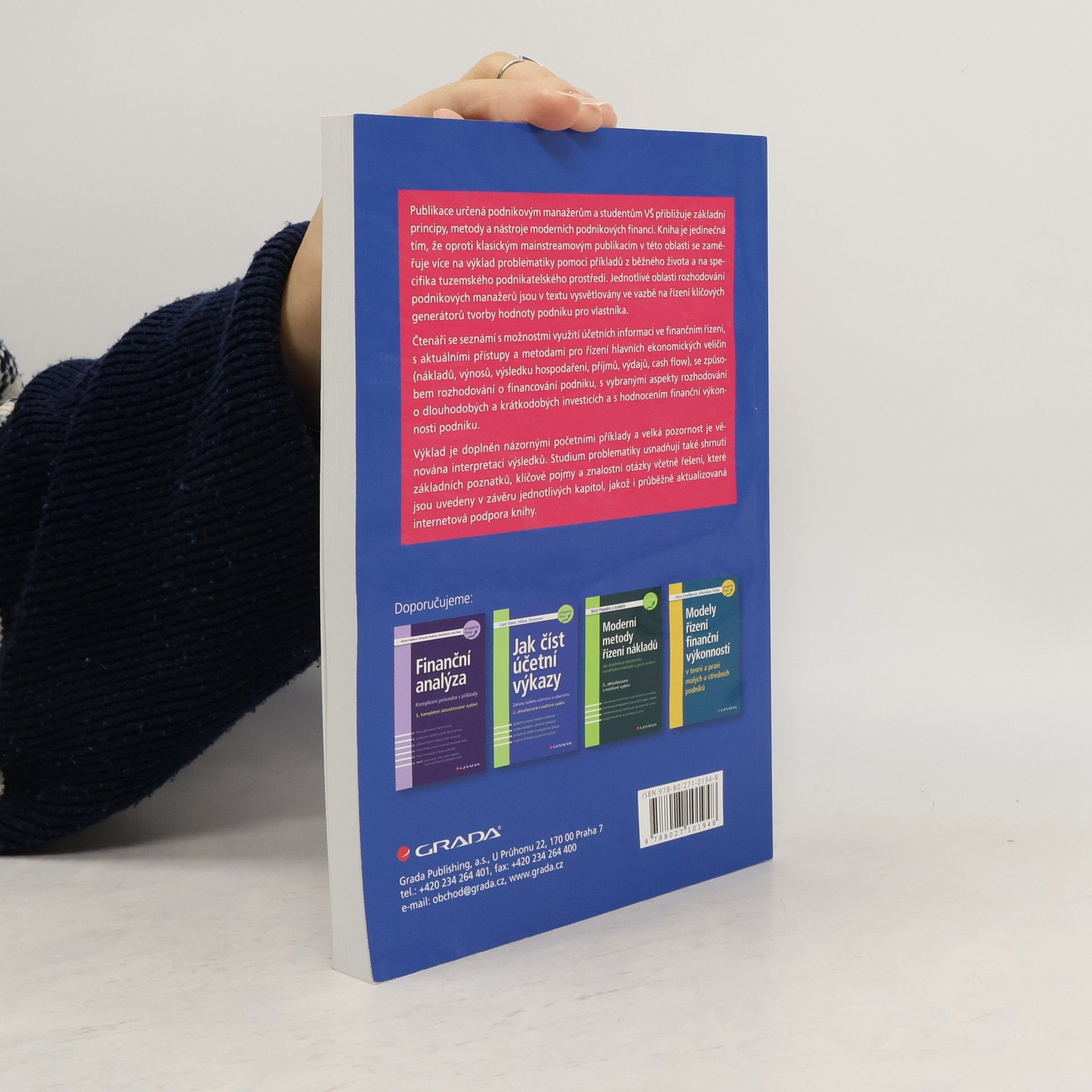 Publikace určená podnikovým manažerům a studentům VŠ přibližuje základní principy, metody a nástroje moderních podnikových financí. Kniha je jedinečná tím, že oproti klasickým mainstreamovým publikacím v této oblasti se zaměřuje více na výklad problematiky pomocí příkladů z běžného života a na specifika tuzemského podnikatelského prostředí. Jednotlivé oblasti rozhodování podnikových manažerů jsou v textu vysvětlovány ve vazbě na řízení klíčových generátorů tvorby hodnoty podniku pro vlastníka. Čtenáři se seznámí s možnostmi využití účetních informací ve finančním řízení, s aktuálními přístupy a metodami pro řízení hlavních ekonomických veličin (nákladů, výnosů, výsledku hospodaření, příjmů, výdajů, cash flow), se způsobem rozhodování o financování podniku, s vybranými aspekty rozhodování o dlouhodobých a krátkodobých investicích a s hodnocením finanční výkonnosti podniku. Výklad je doplněn názornými početními příklady a velká pozornost je věnována interpretaci výsledků. Studium problematiky usnadňují také shrnutí základních poznatků, klíčové pojmy a znalostní otázky včetně řešení, které jsou uvedeny v závěru jednotlivých kapitol, jakož i průběžně aktualizovaná internetová podpora knihy.