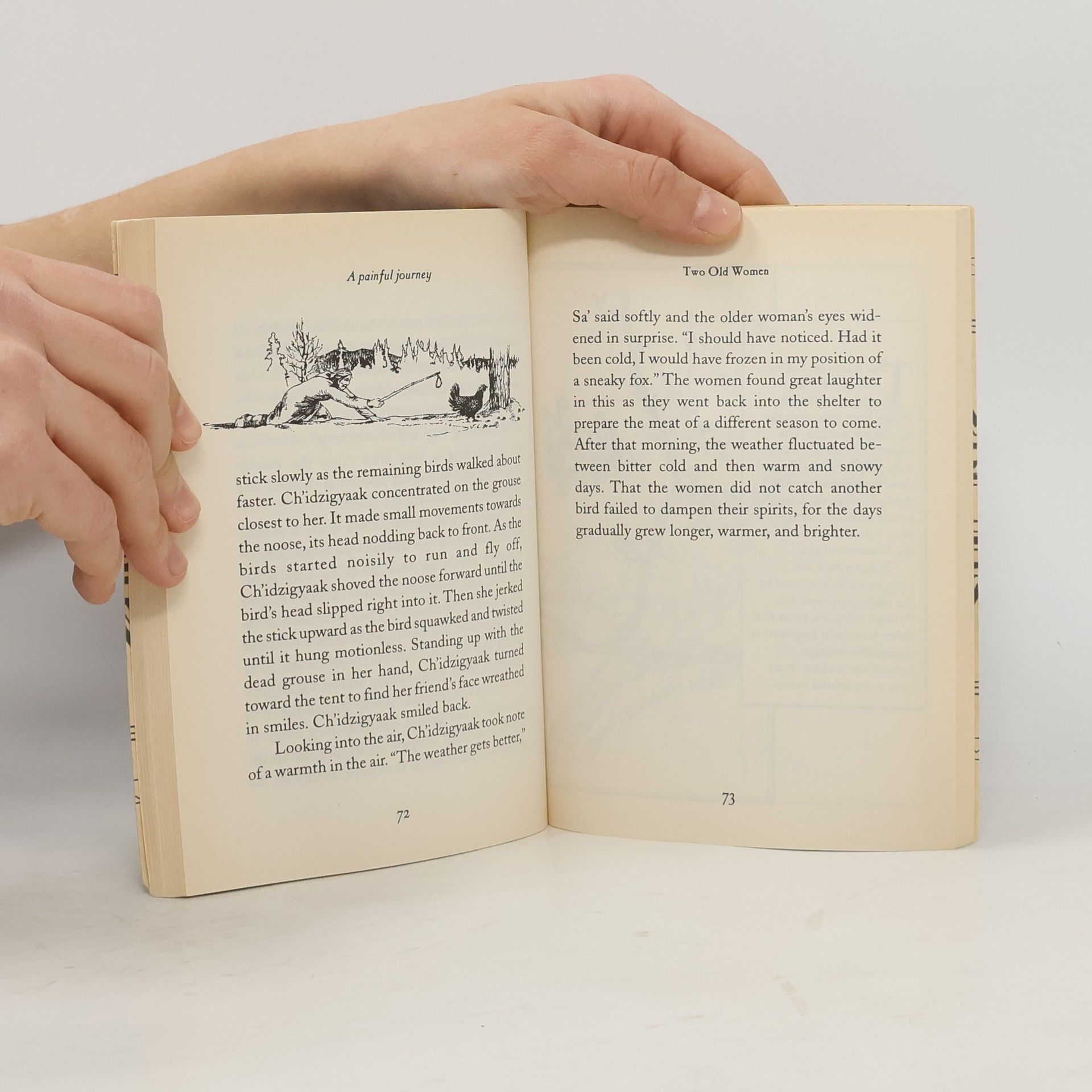 Two Old Women: An Alaska Legend of Betrayal, Courage and Survival is a classic Athabascan Indian tale of survival, filled with suspense and wisdom as told by Velma Wallis, an outstanding Native American writer. Her style is a refreshing blend of contemporary and traditional, and her choice of subject matter challenges the taboos of her past. Yet her themes are modern -- empowerment of women, the aging of America, and a growing interest in Native American values. Based on a legend told and retold for many generations in the remote Yukon River region of northeast Alaska, this is the tragic and shocking story (with an unexpected upbeat ending) of two elderly women who are abandoned by a migrating band facing starvation because of unusually harsh Arctic weather and a shortage of fish and game
